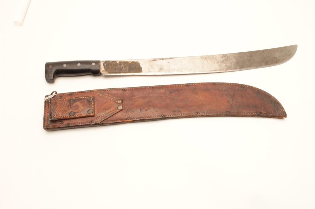 Lot of US machete by Collins with label and scabbard 1942 dated in very good plus condition with Philippines Kris pair to poor condition, WW2 GI bring back. Est:$100-200