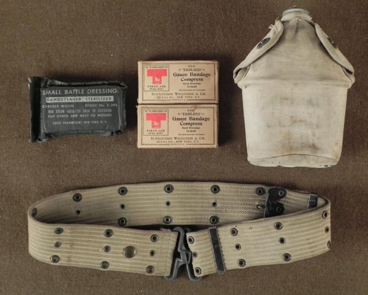 U.S. MILITARY GI LOT-WEB BELT-CANTEEN, TRAY & COVER-3 PKGS COMBAT BANDAGES * *