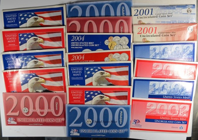 U.S. MINT SETS: 2-2000, 1-2001, 2-2002, 3-2003 & 1-2004