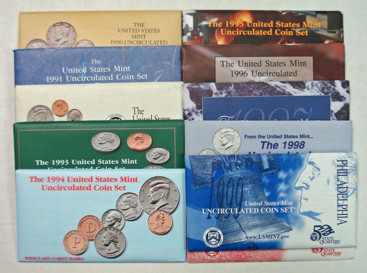 COMPLETE SET OF 1990 THRU 1999 ALL NICE ORIGINAL MINT ENVELOPES, EST. $55.00 TO $65.00