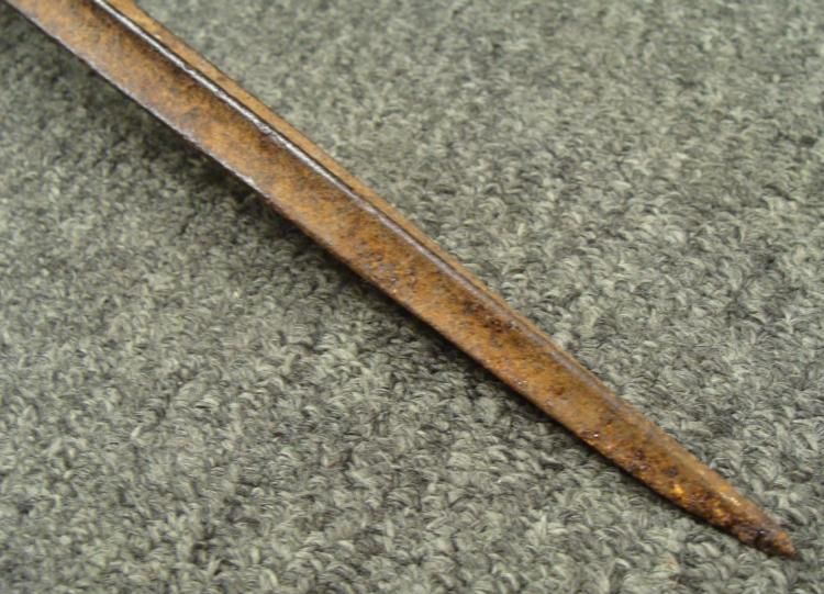 U.S. MODEL 1816 SOCKET BAYONET USED IN THE CIVIL WAR---"Z" SHAPED CONNECTOR. 19" OVERALL LENGTH. * * THESE EARLY TYPES DID NOT HAVE A CONNECTING RING-THEY SLID ON THE MUSKET AND TWISTED INTO A LOCKING POSITION-THIS ONE SHOWS ITS AGE WITH MUCH RUST *