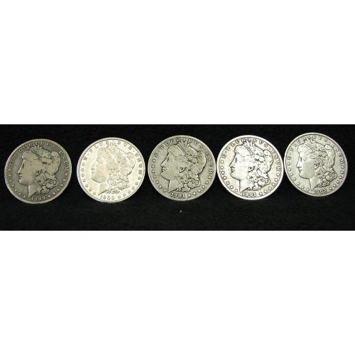 LOT OF 5 U.S. MORGAN SILVER DOLLARS. Consists of 1899-O, 1900-O, 1901-O (2), & 1902 U.S. Morgan silver dollars.