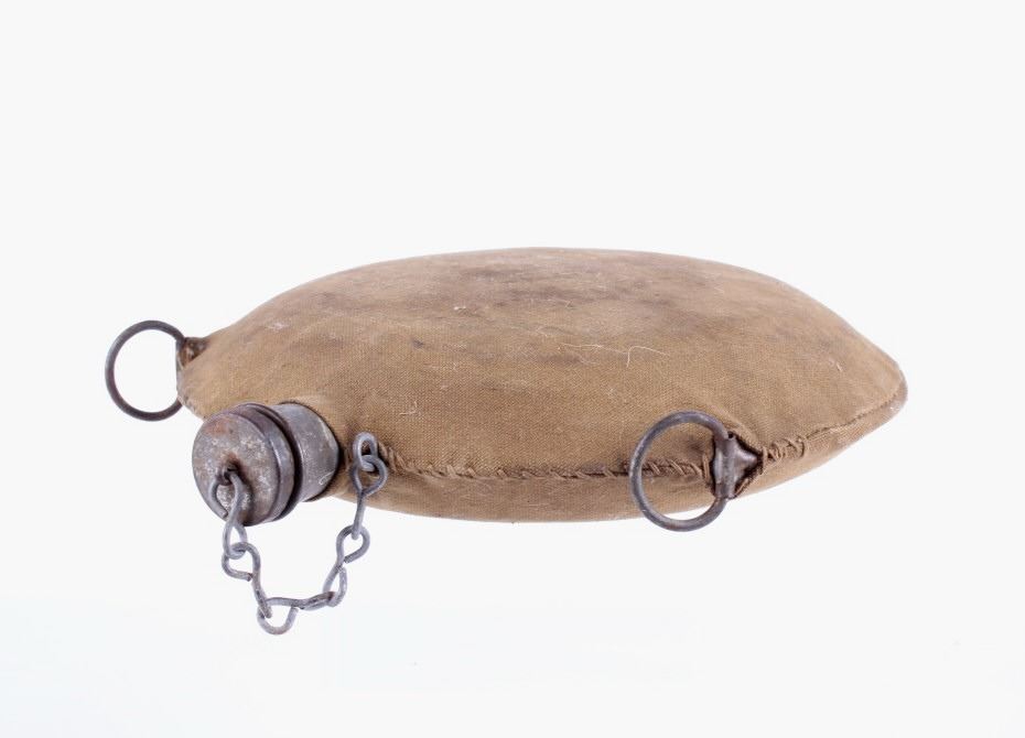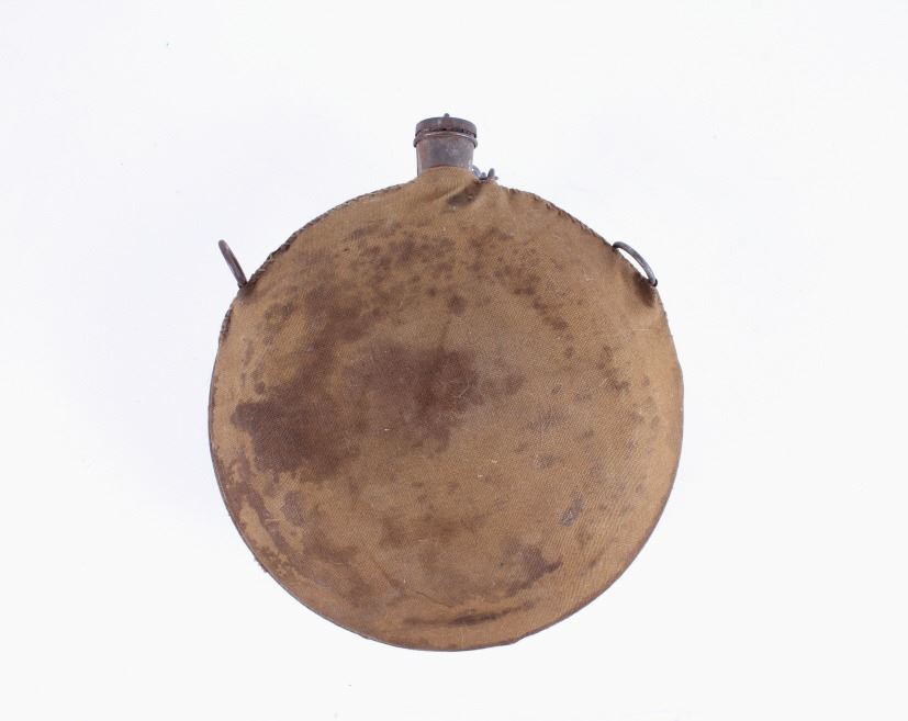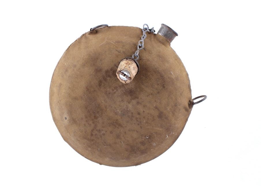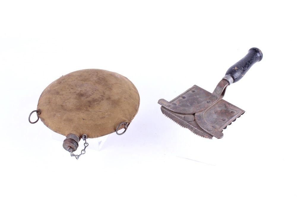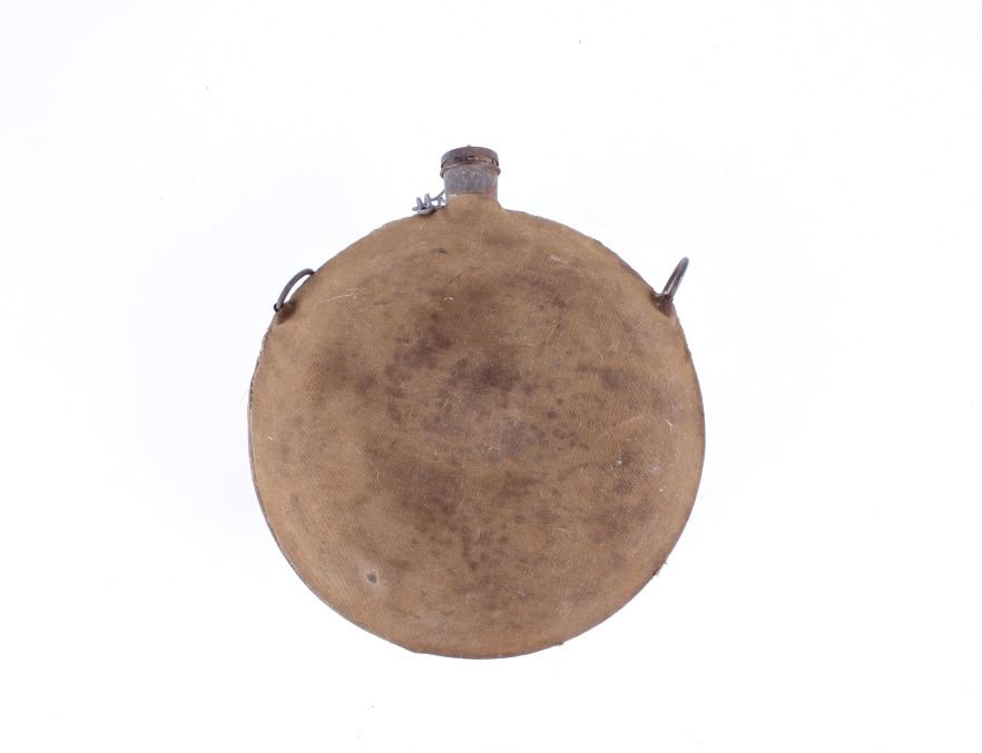 For your consideration is this U.S. Military Cavalry issued canteen and curry comb circa 1860-1920's. The canteen shows design closer to WWI era 1915's with a cork top that is chained to the frame of the canteen and clothed in green canvas. The curry comb shows a slotted design and shows a 'Bluegrass' stamp on the back top of the comb; this comb would have been used to care for the cavalrymen's horse before and after battle or patrol, and the square design would make it easier to store and access with the style of equipment carries of the day. The condition of this issued canteen and curry comb is fair the canteen shows its age and wear consistent with that age and the comb shows good usable condition with very little oxidation. The measurements of this of of the canteen are 8 1/2" x 7 1/2" and the curry comb measures 8 3/4" x 5 1/2" x 2 1/2".