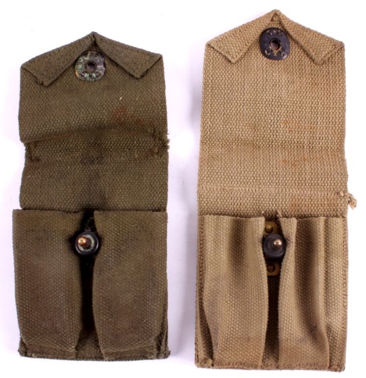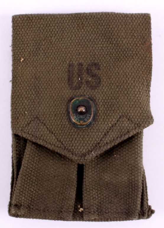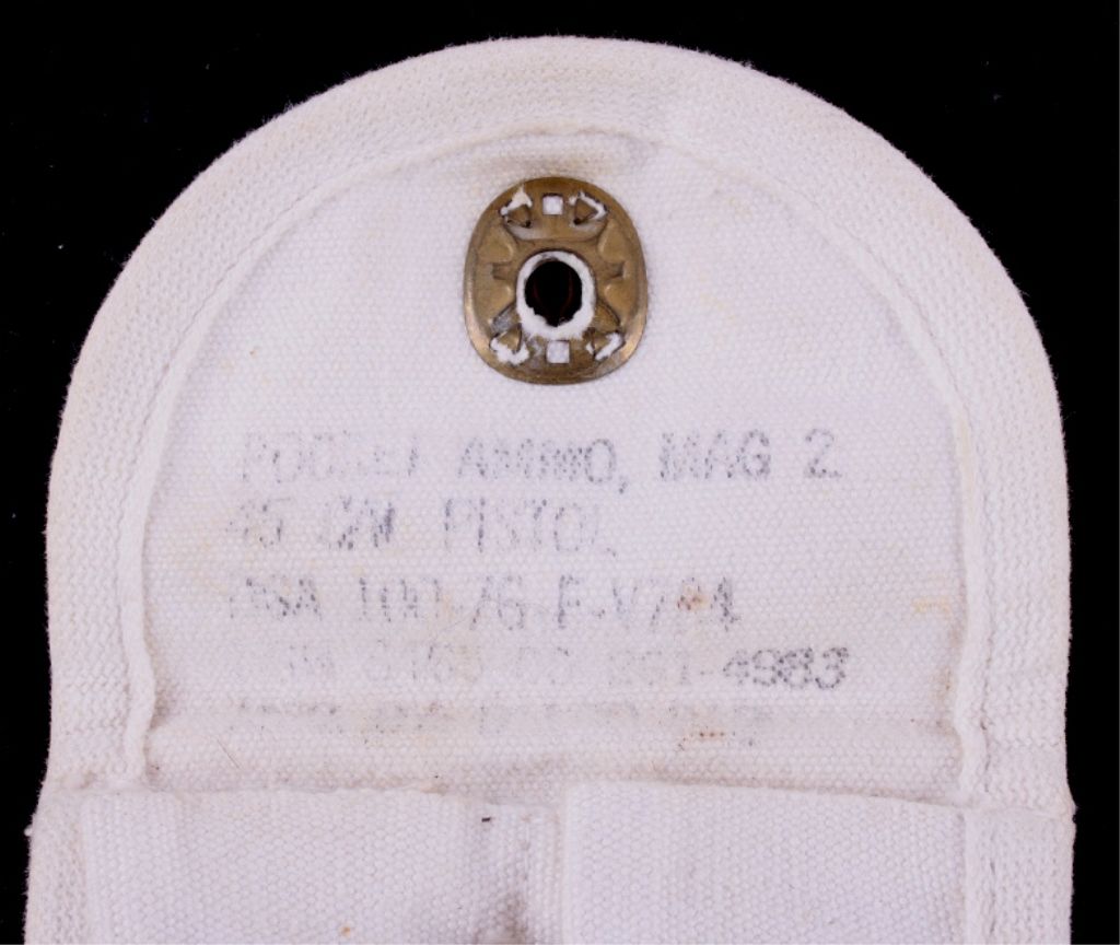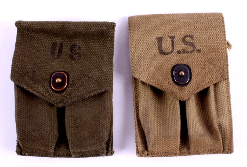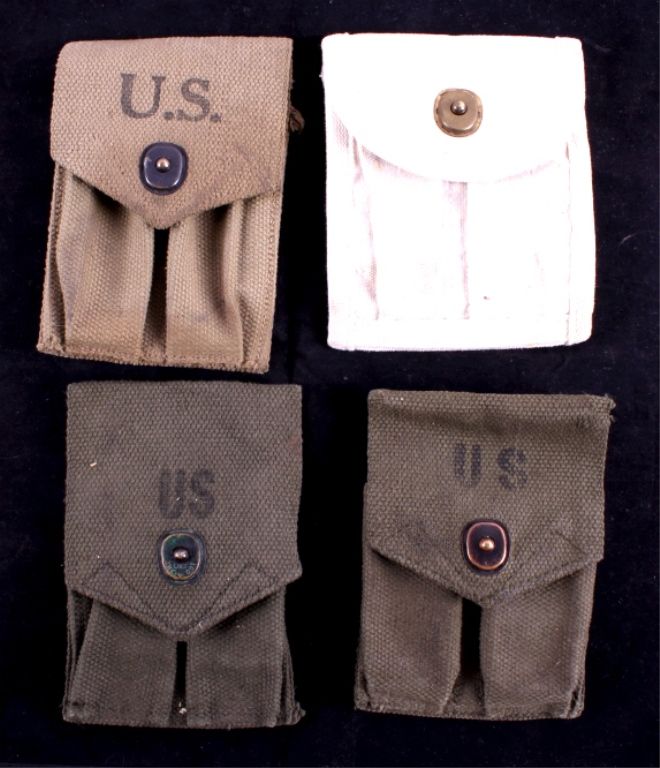 This is a collection of 4 M1911 .45 magazine pouches. Three are believed to be from WWII and the fourth one is a navy issued pouch from the Vietnam era. all the pouches are in good condition. They each measure 4" s 5".