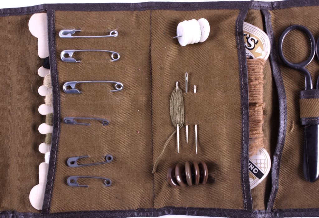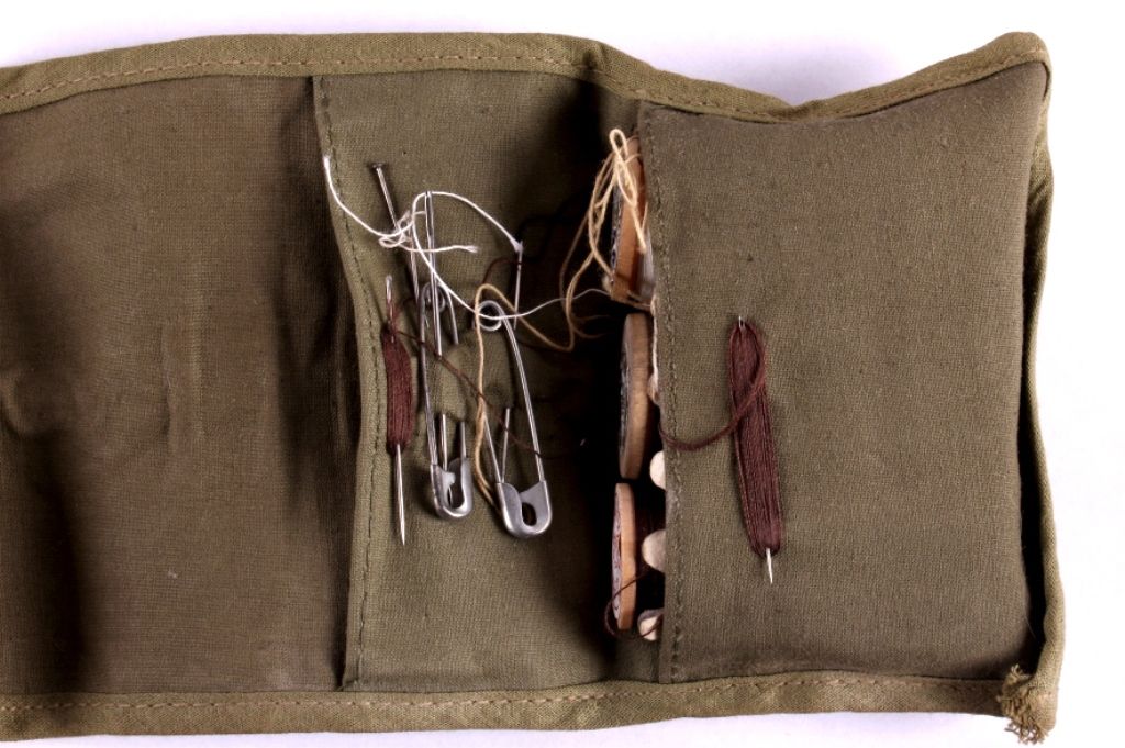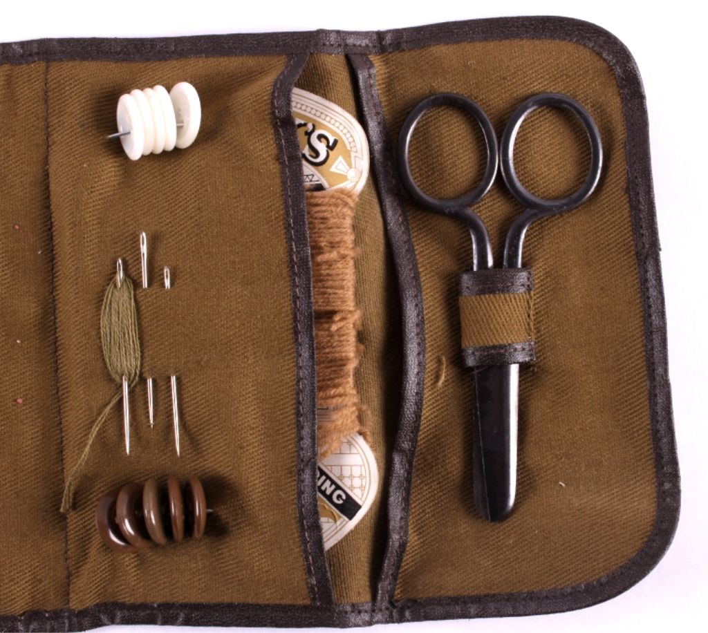This is a pair of U.S. military sewing kits. Both seem to be complete and one appears to have never been used. Each kit contains needles and thread. One has scissors, buttons, and extra pins. They are both in good condition.