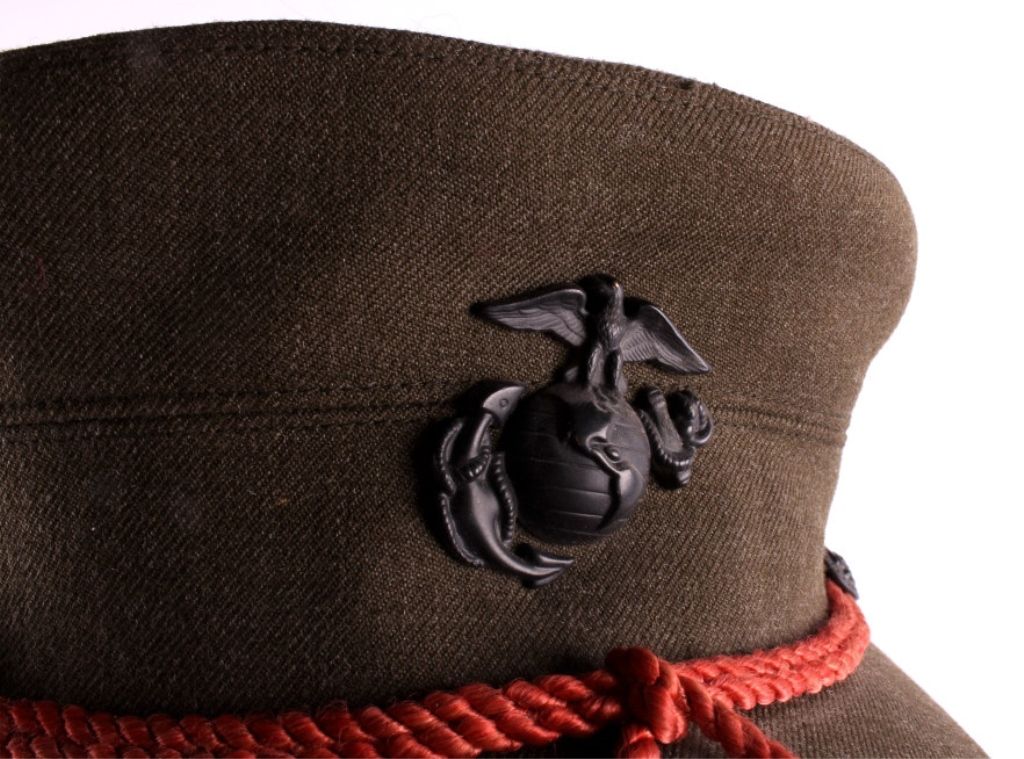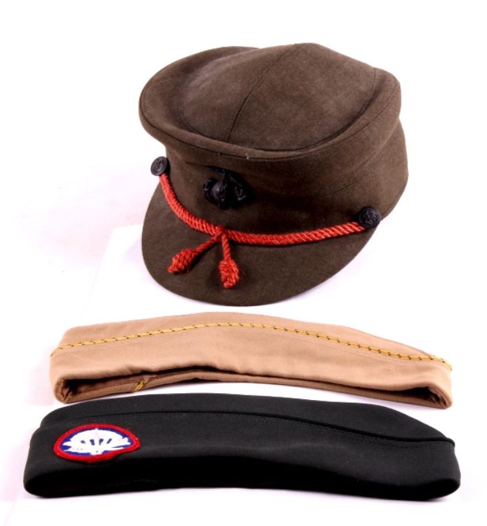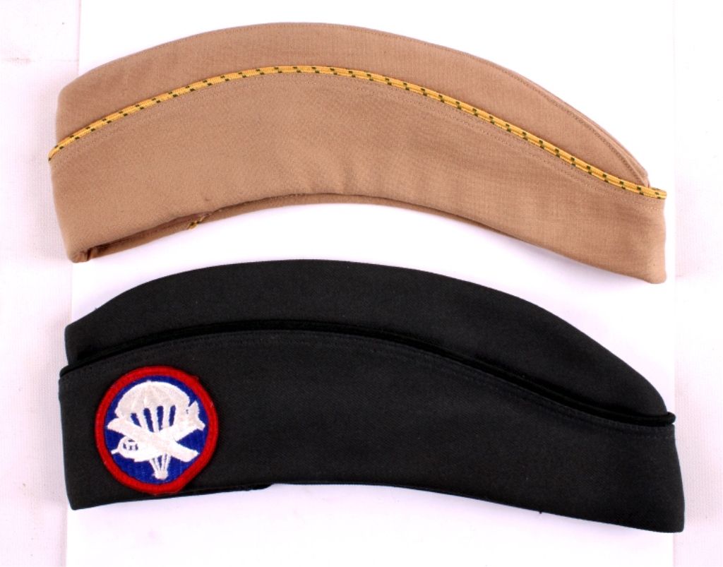 This is a collection of 3 U.S. military women's hats. They are from the Army and Marine Corps. One garrison cap features an Airborne patch. The other garrison cap features MP Service piping. The third hat is a Marine Corps hat with pin and buttons. All three hat are in good condition.