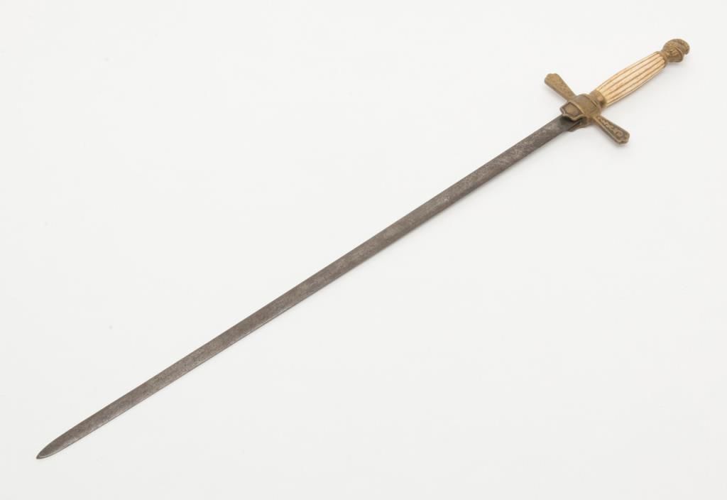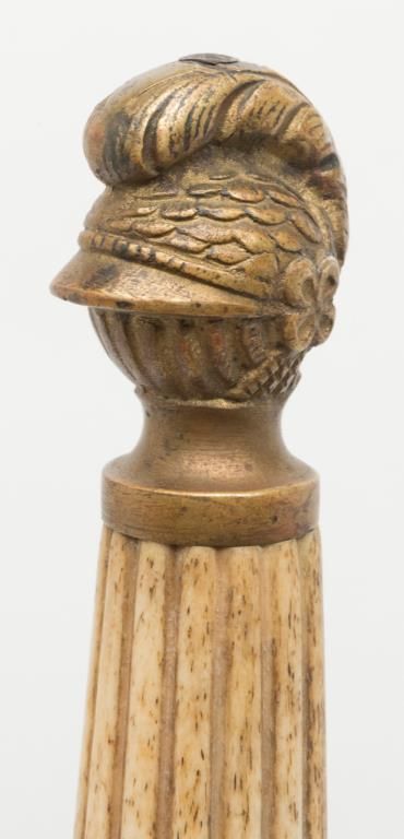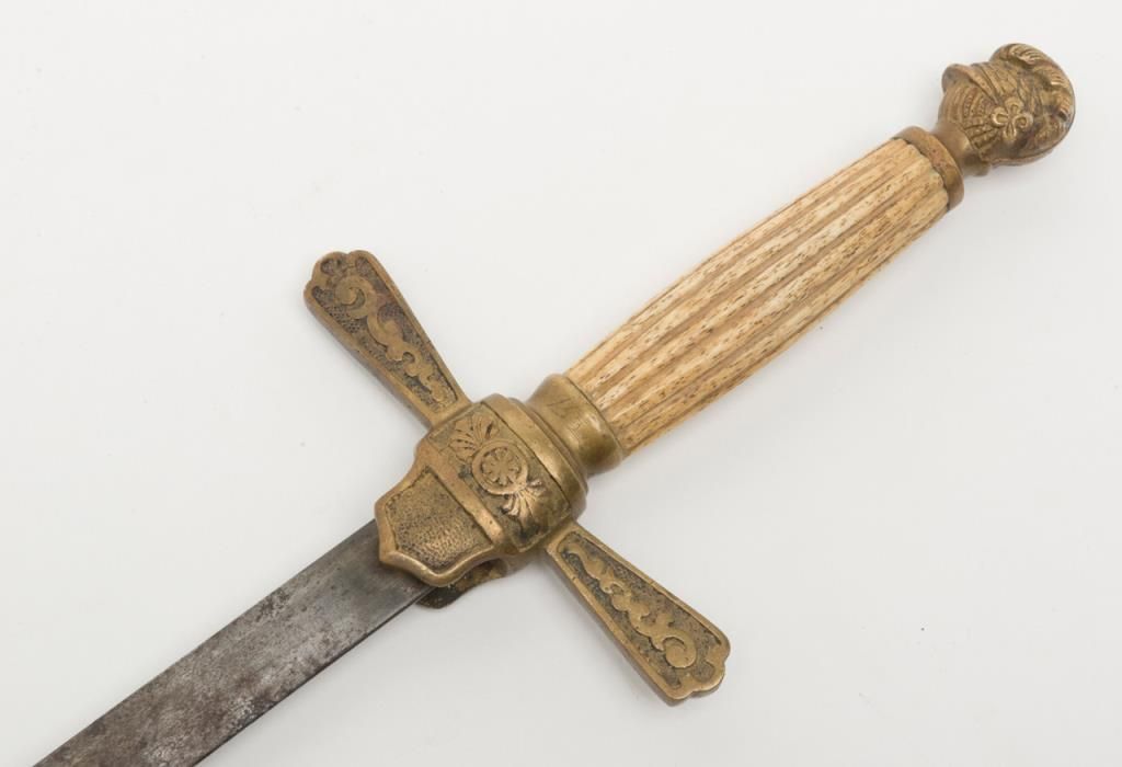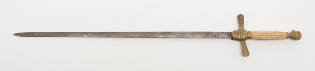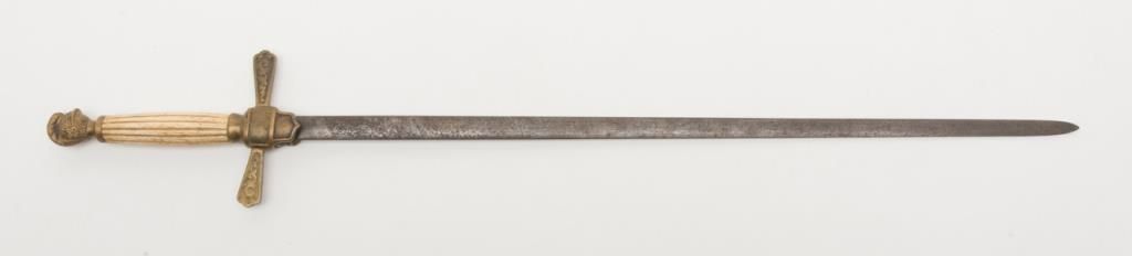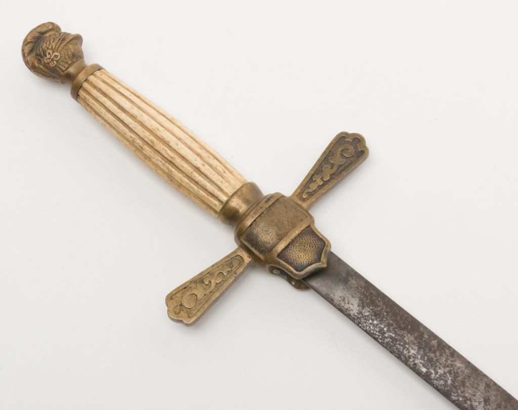 U.S. Militia Officers style sword of cadet size with Roman helmet pommel and fluted grip. Fair to good un-cleaned condition; circa 1830-1870. Est.: $150-$300.