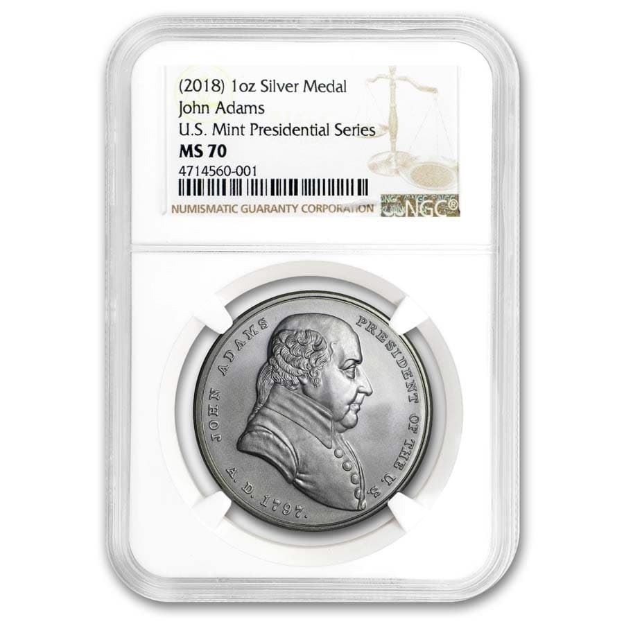 U.S. Mint Silver John Adams Presidential Medal MS-70 NGC