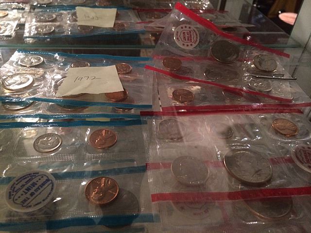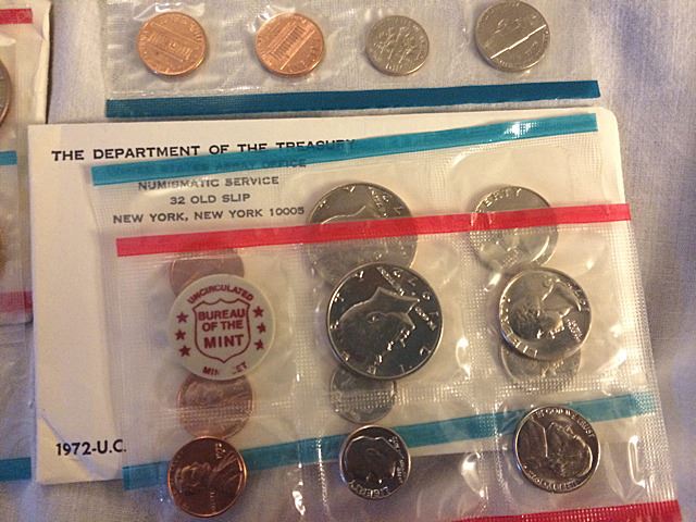 U.S. Mint proof sets includes 1970, 1971, 1972, 1973, 1974, 1976, 1977, 1980 and 1981. Approx. 11 sets of 1972 US Mint Sets in plastic. Approx. 20 sets.