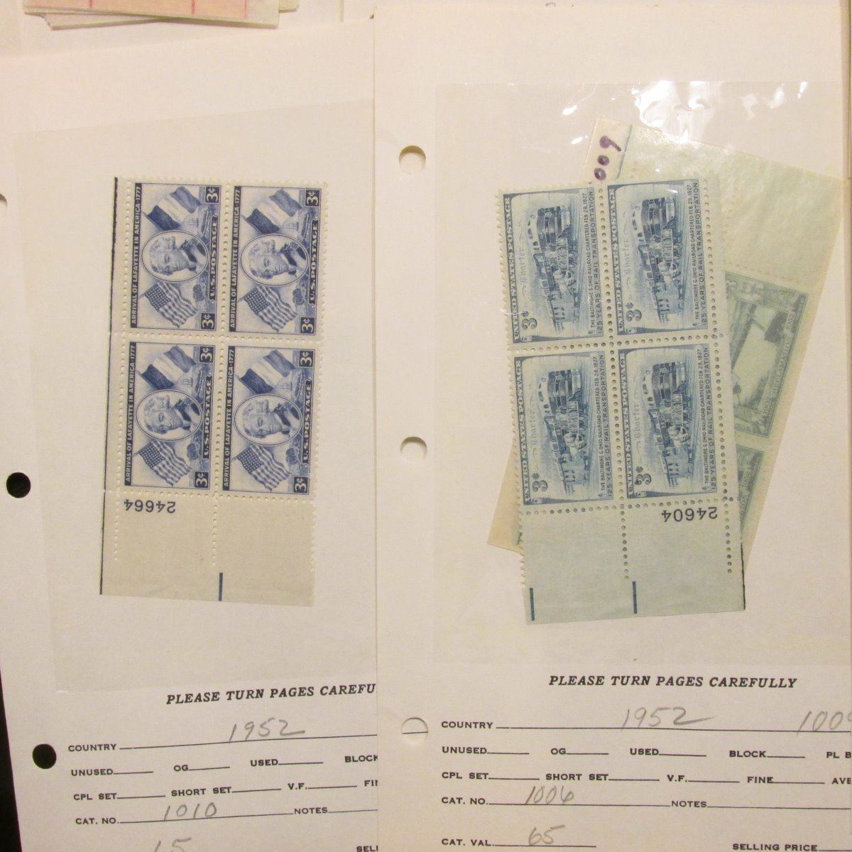 U.S. Mint, unused U.S. Plateblocks: Scott # 1004, 1006, 1009, 1010, 1011, 1021, 1027, 1028, 1062, 1071, 1072, 1078, 1080, 1081, 1082, 1086, 1095, 1096, & 1097.