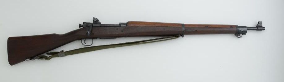 U.S. Model 03-A3 bolt action rifle by Remington, .30-06 cal., 24-1/2” barrel marked RA with flaming bomb proof and dated 9-43, re-blued finish, wood stock, olive green woven sling, #4050683. This gun is in overall good condition as rebuilt with a bright bore, crisp action, good markings, front sight cover and overall good wood with circle P proof and RA, crossed cannons and FJA in square cartouches on the left side of thestock above the trigger group. From an old estate. Est.: $350-$700.
