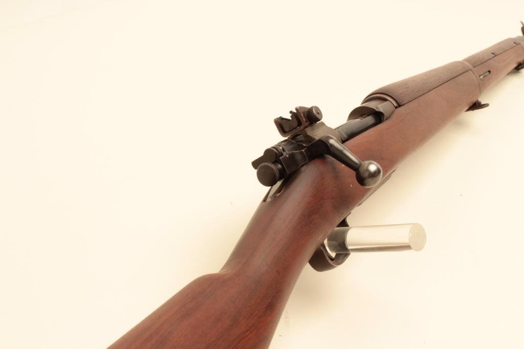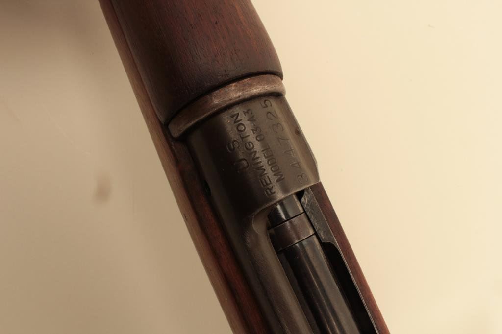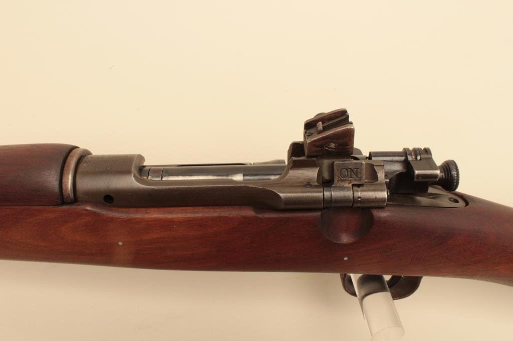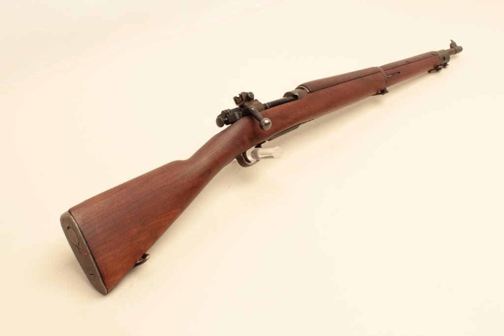 RA barrel dated 2-43, military finish, wood stock, S/N 3447325, in overall very good condition with crisp action, sharp markings, good bore and very good wood displaying crisp circle P proof and FJA, crossed cannons and OG inspections (filled in cut out section on right side of stock by bolt). (C&R). Est.: $250-$500.