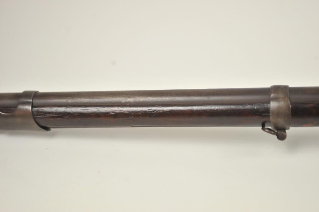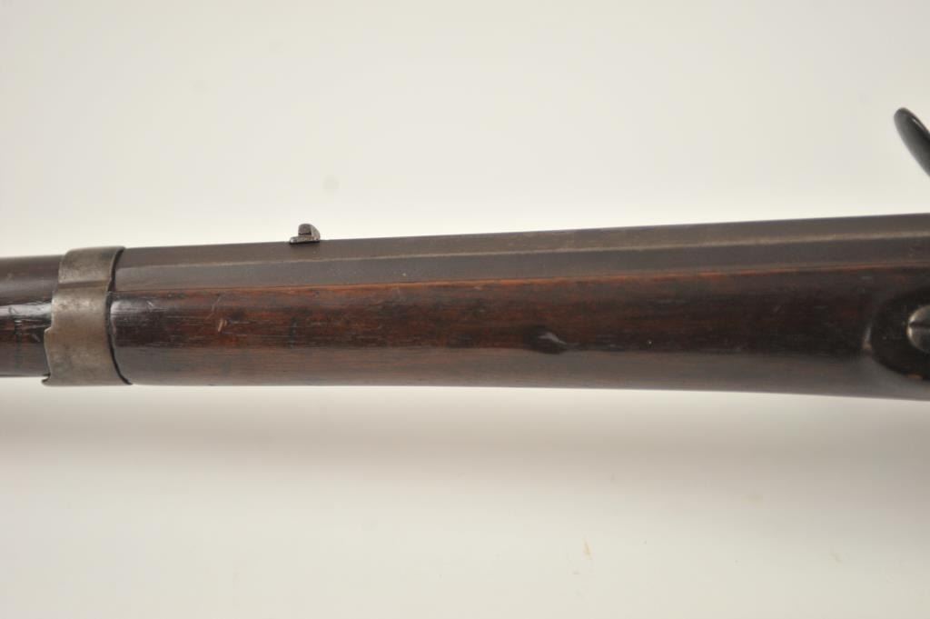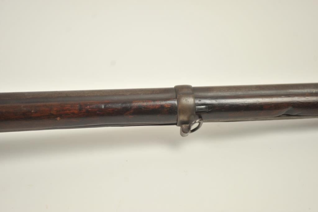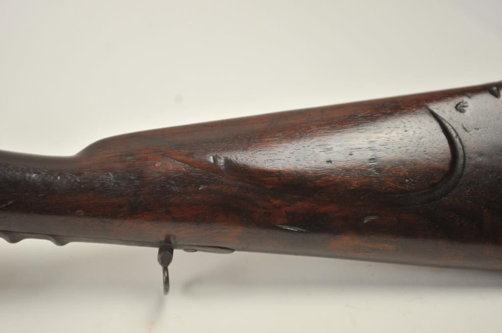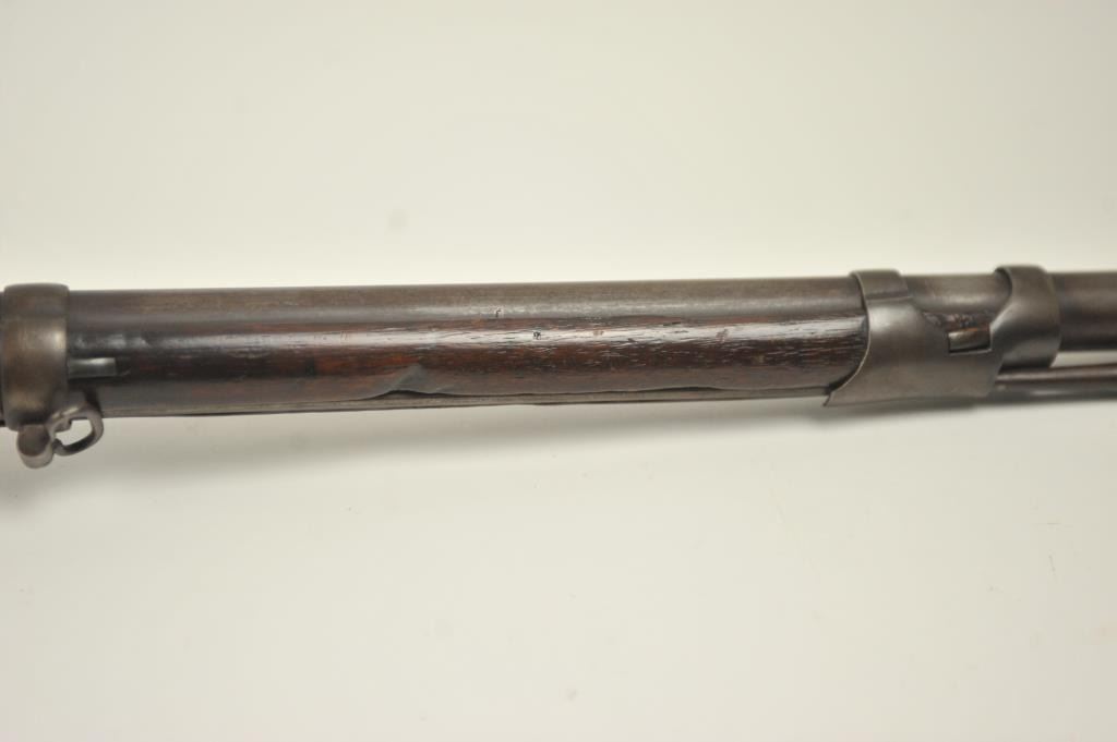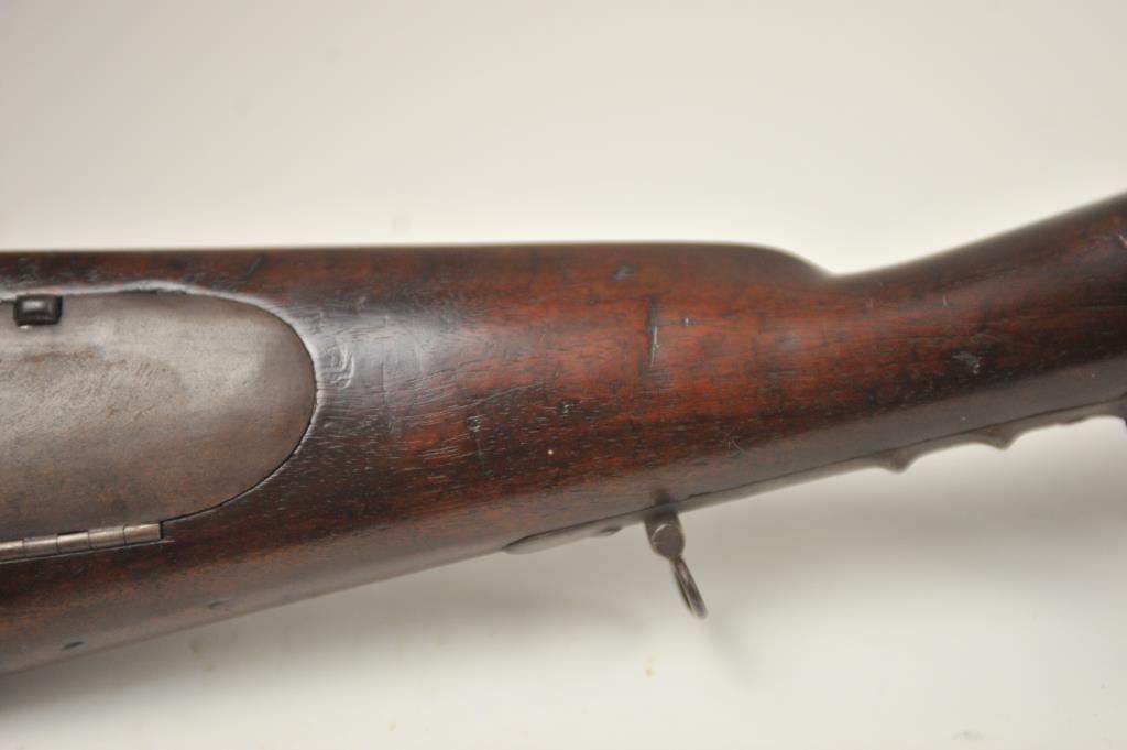 U.S. Model 1814 Common rifle by Henry Derringer with a 33 3/16” barrel marked with a large U.S. on the lock and H. Derringer, Phila. Also marked in two lines on the barrel, .54 caliber rifled and expertlyre-converted back to flintlock from percussion. The stock shows some restoration and refinishing and a couple areas of small losses of wood during use. Only 2,000 were delivered by H. Derringer, who’s name becameinfamous with the Lincoln assassination pistol. The rifle is in N.R.A. good overall condition. Est.: $1,400-$2,800. (Antique).