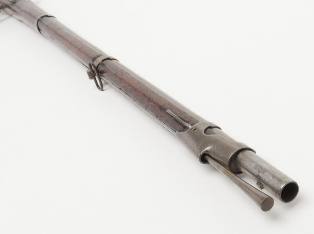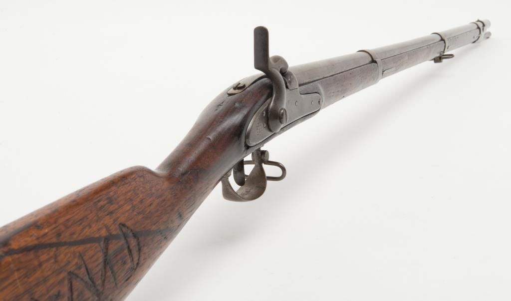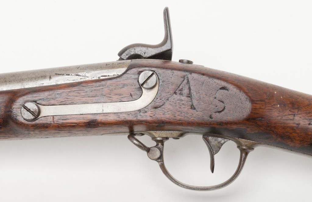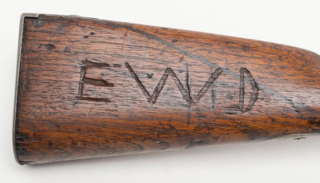 U.S. Model 1842, .69 caliber smoothbore musket by Harpers Ferry Arsenal dated 1846 in good original condition. The metal surfaces show a gray to brown patina finish with scattered light to moderate erosion and pinprick pitting with some slightlyheavier pitting in the firing areas of the breech. The lock markings are visible but the Eagle is slightly light. The left side of the breech shows a good VP and Eagle proof. The stock is good with some minor dings, mars, small losses, normal aging and soldier carving along with the initials āE W Dā on the right side. The original sling swivels and trumpet shaped ramrod are included. The action is good and generally good overall. There is also āA. S.ā carved in initials behind side plate andanother carving of initials or insignia on the left center of the stock. A good date indicating possibly used in the Mexican-American war and many were also reissued and used in Civil War particularly by the South who had them in arsenals when the war began. Est.: $600-$1200