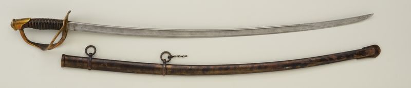 U.S. Model 1860 Cavalry Officer’s saber by Ames dated 1863 with scabbard; D.R. inspection; good to very good overall; nice grip and wrap. Est.: $500-$1,000.