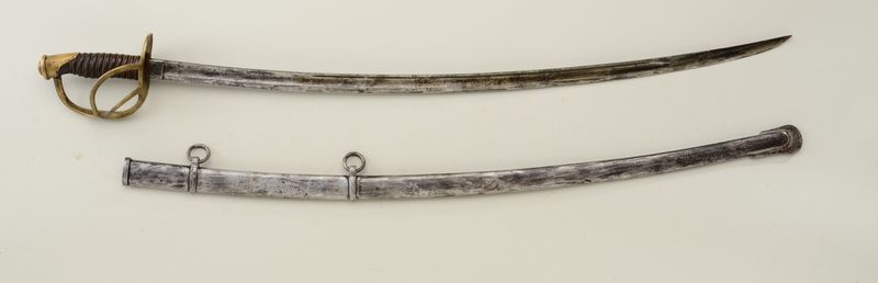 U.S. Model 1860 Cavalry saber by Ames dated 1865 and inspected by J.F.; good to very good overall condition; the grip is an excellent, possibly period, re-wrap; markings are slightly light as usual on Ames. Est.:$350-$700.