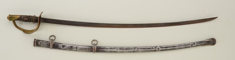 U.S. Model 1860 Cavalry saber by Mansfield and Lamb dated 1862 inspected by “C.G.S.” in overall fair to good condition; scabbard shows dings, wire on grip is loosening and unraveling. Est.: $250-$500.
