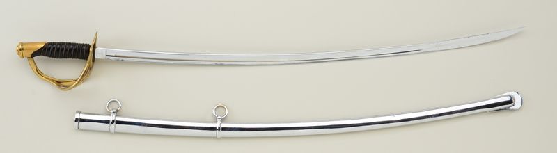U.S. Model 1860 Cavalry sword and metal scabbard marked “Mansfield and Lamb” and dated 1864; restored and refinished post 1900 for parade or display, possibly by a veteran for encampments. Est.: $300-$600.