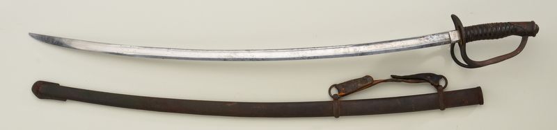 U.S. Model 1860 cavalry saber by Ames dated 1865; inspected by A.W.C. (first letter is light); good to very good condition, normal aging, old rust and pitting on scabbard; old leather hanger; nice patina; a good lookingveteran with only slightly light Ames marking. Est.: $350-$700.