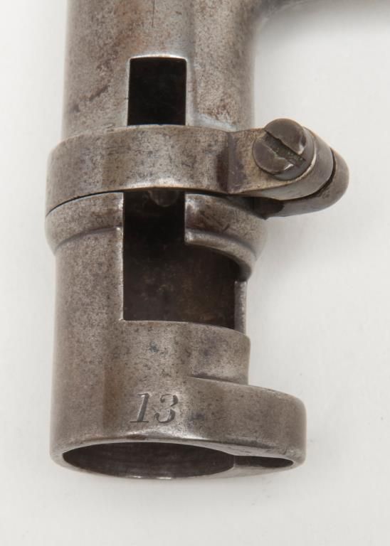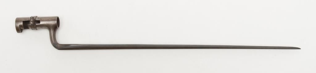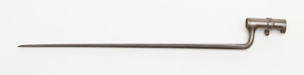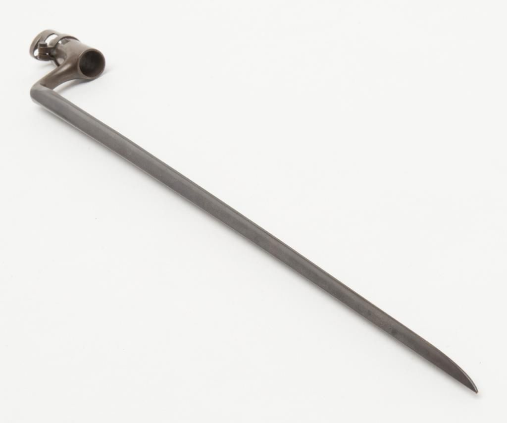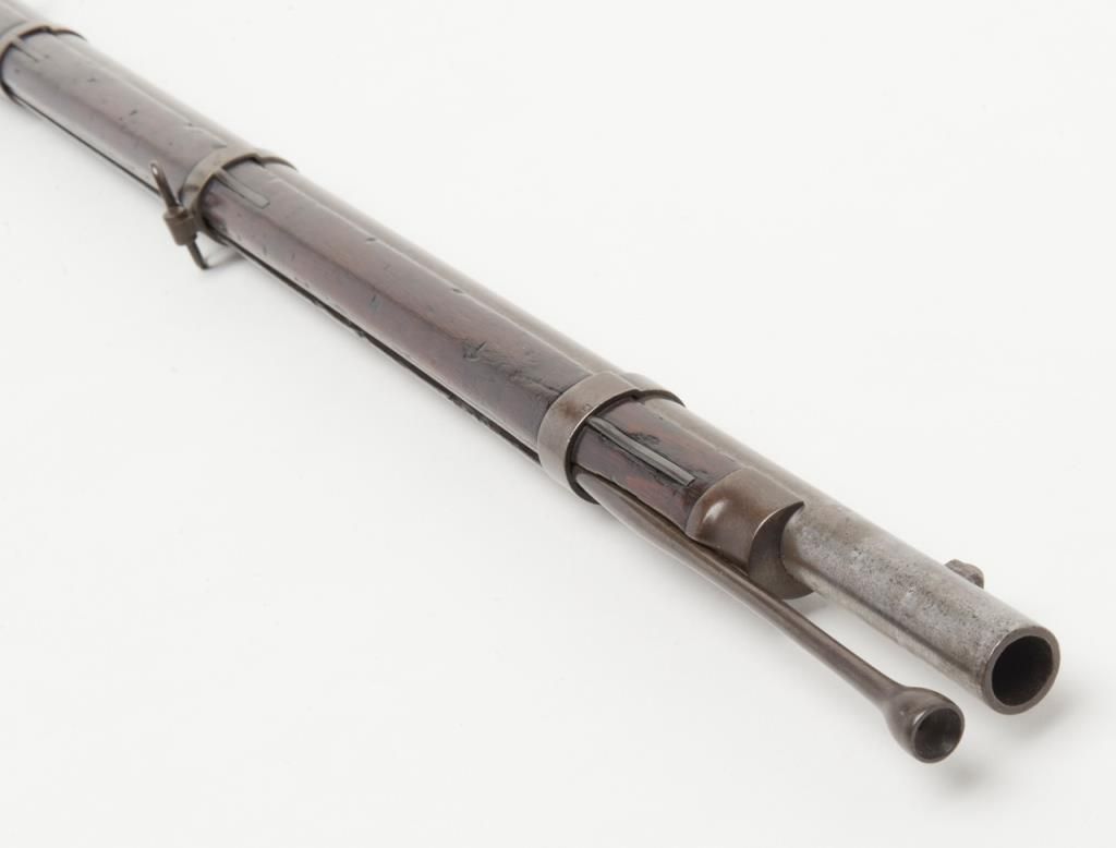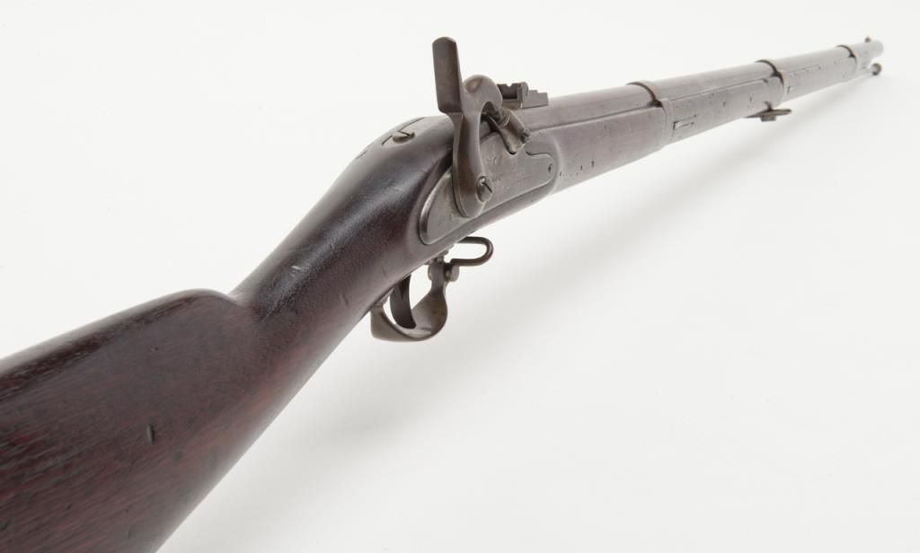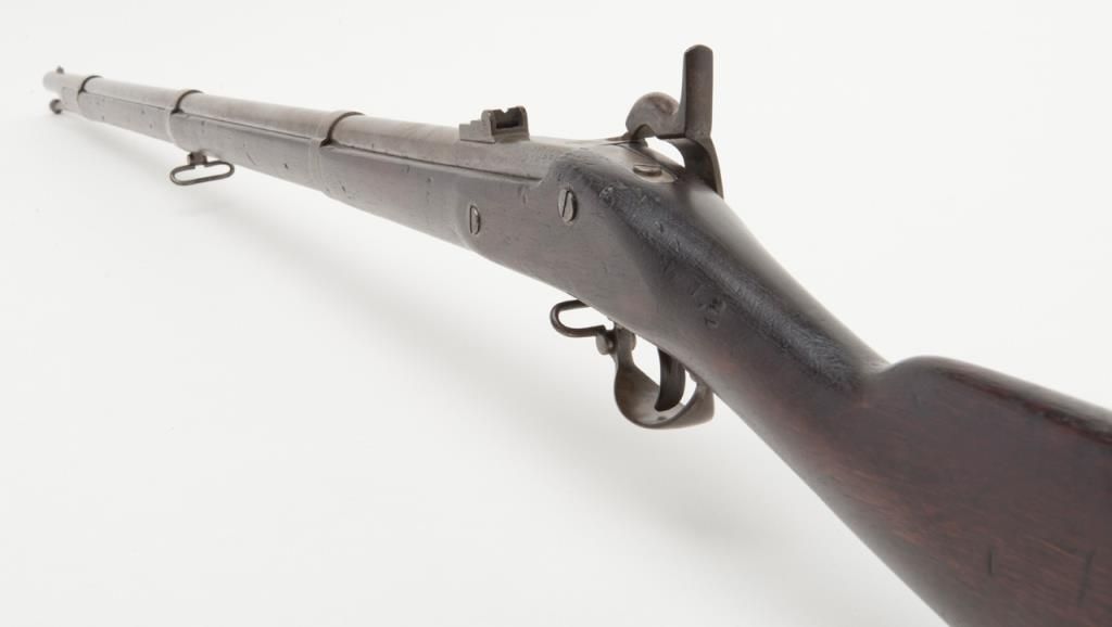 U.S. Model 1861, .58 caliber rifled musket by Springfield Arsenal in good condition with bayonet and ramrod. Dated 1862 at breech. Good clear markings and Eagle stamp on lock. Minor erosion and surface pitting with just slight metal aging.The stocks are good but show no cartouches and some darkening, minor dings, mars, scratches and just normal aging. Lock works well. The bore is fair to good with strong rifling. Est.: $1000-$2000