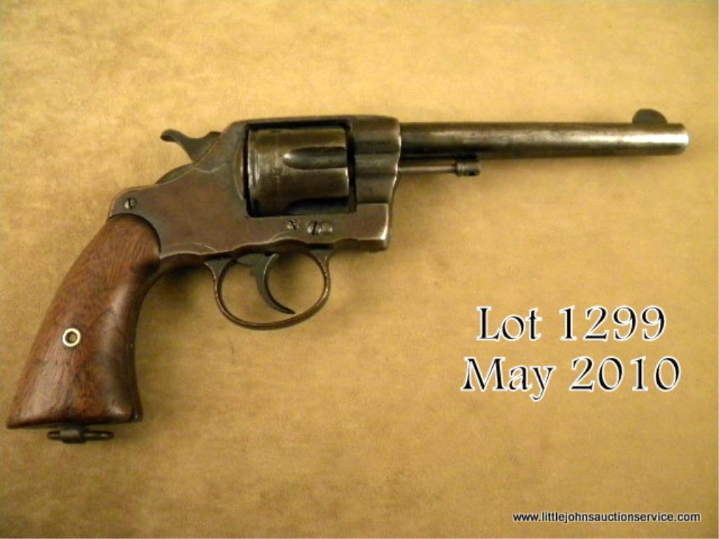 U.S. Model 1901 .38 D.A. Revolver, serial #109295. Good condition, 40-60% original blue, good markings, good overall. No cartouches visible on grips. Est. $250-500