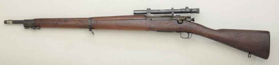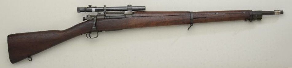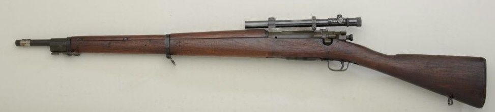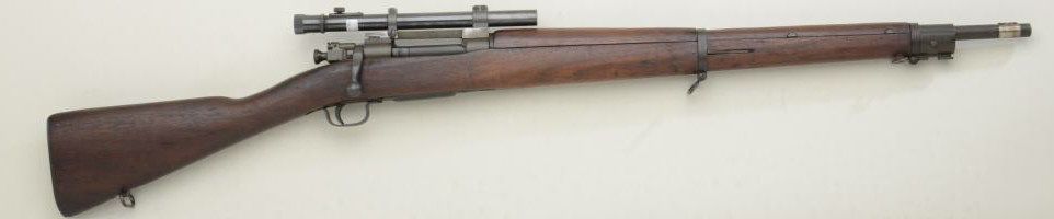 U. S. Model 1903-A4 style assembled sniper rifle, using Smith Corona action, serial #4131349; Smith Corona barrel dated 7/43, front sight removed, Weaver 330 scope on Redfield mount, all correct military partsbut later assembled. The metal surfaces remain in good to very good condition; there is a thumb print size spot on center of scope which is rusting. The stock is good to very good showing traces of cartouches, theaction good, the bore near excellent. It would make a good display item or a shooter. Est.: $1,000-$2,000