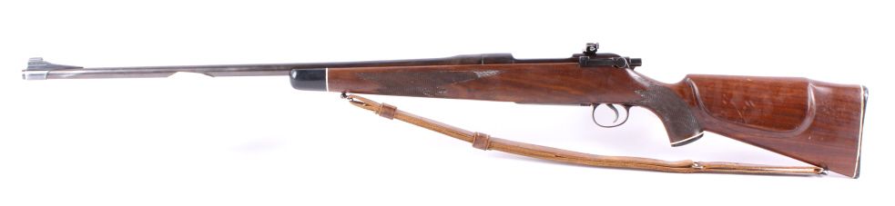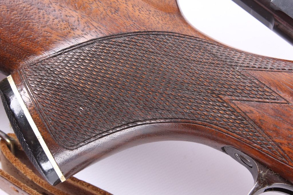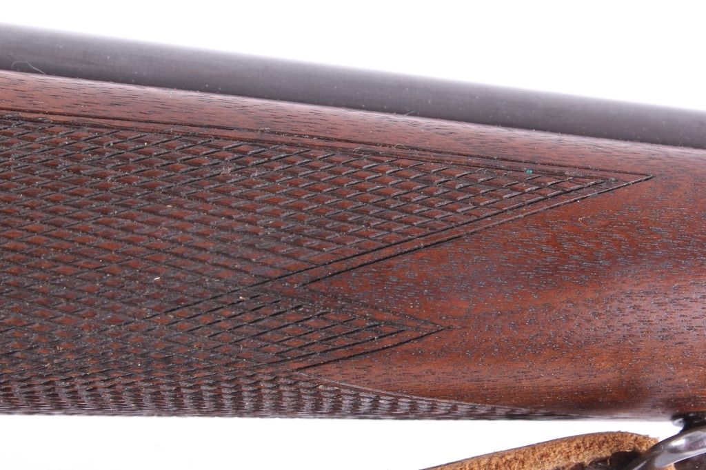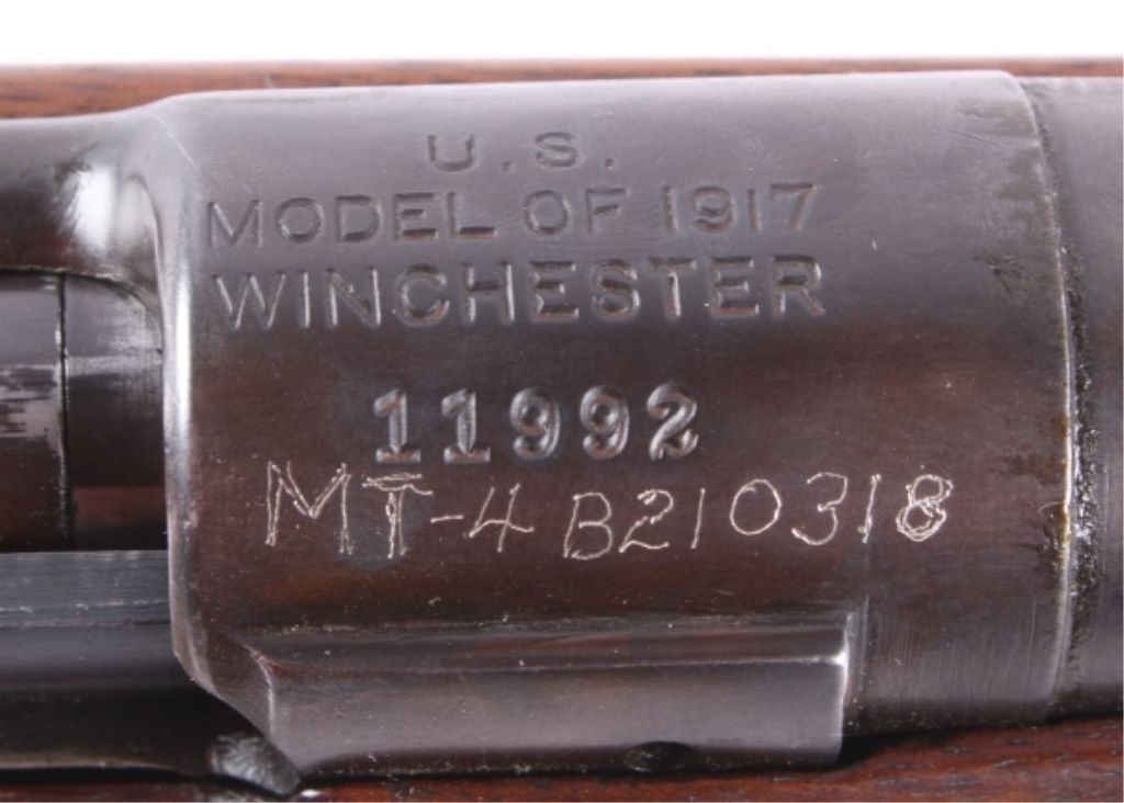 This is an original United States Model of 1917 Winchester. Serial number 11992. The guns first owner marked it "MT-4B210318" and was from Montana. The rifle has a Williams peep site and leather sling. The wood stockhas checkering on both sides. This is in a .30-16 caliber Enfield. P-1917
