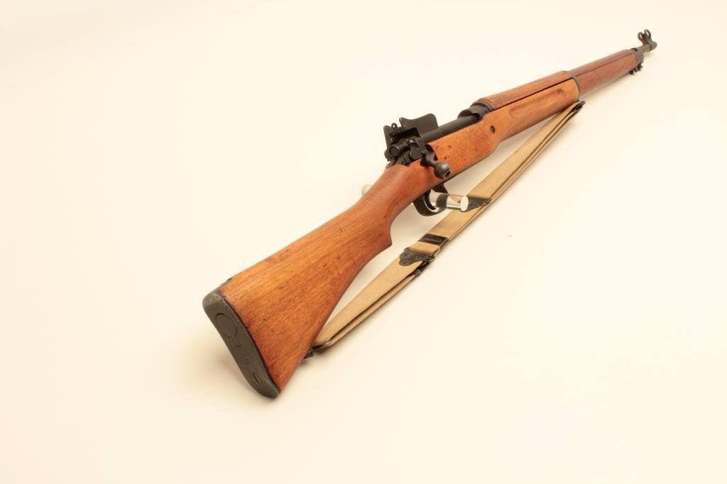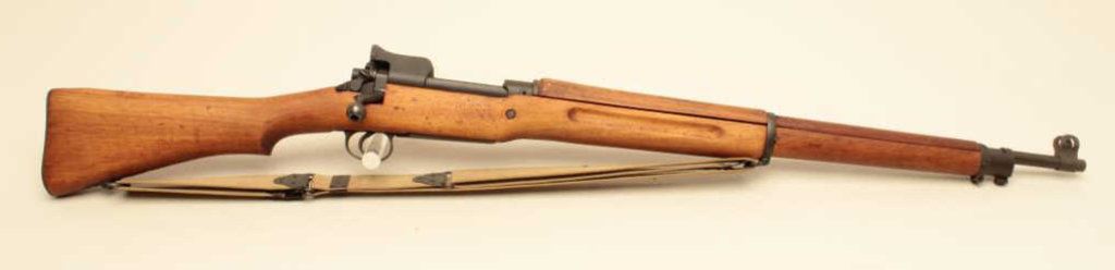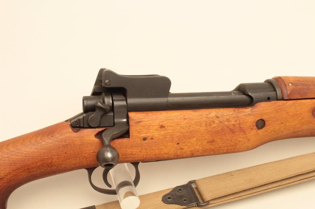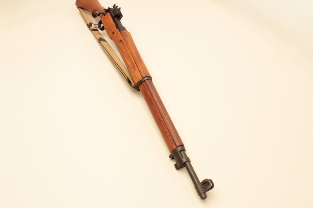 with Winchester barrel dated 3-18, military finish, wood stock, tan woven sling, S/N 226385, fine to near mint as arsenal re-built/refinished. (C&R/PPT). Est.: $700-$1,400.