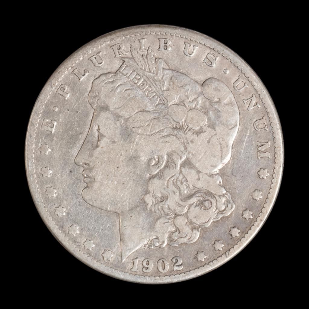 U.S. Morgan Silver Dollar dated 1902-S, rare date and appears in fine condition. Est.: $70-$140.