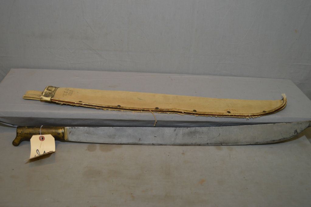 U.S. N. Marked MK 1 Machete w/ USN Mk 1 web scabbard [ w/ approx 26" blade ]