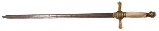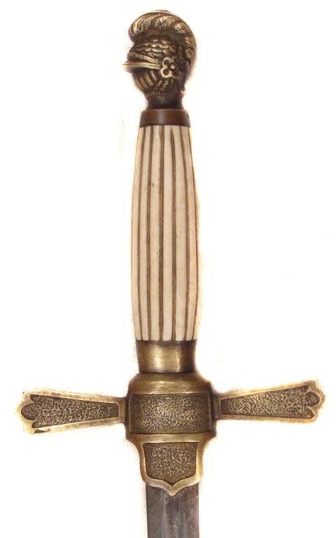 Brass mounts, bone grip. Latter 19th century. Blade shortened. Overall length 65 cm.