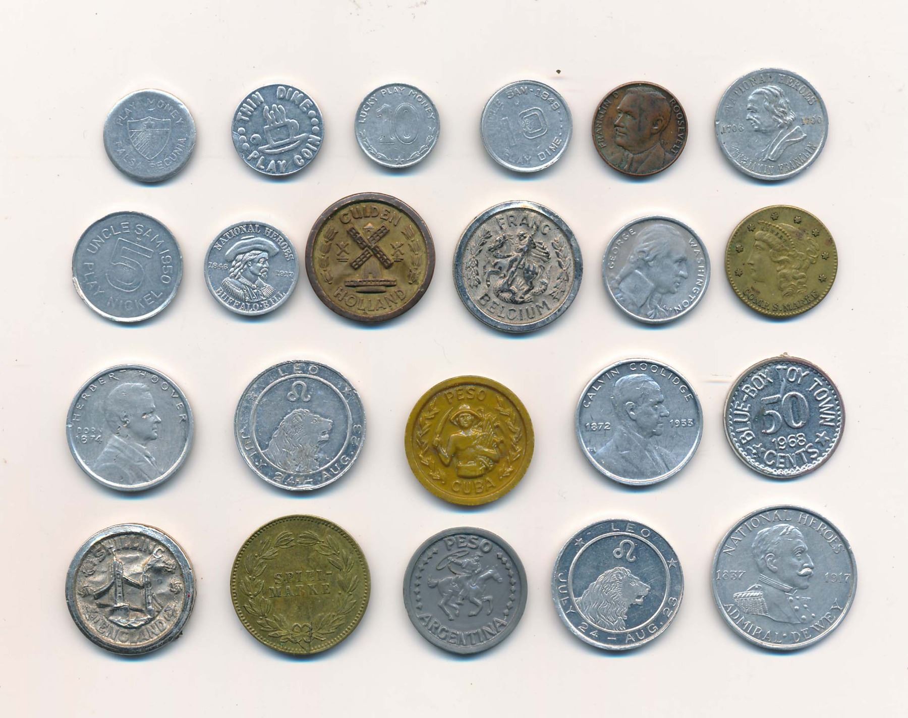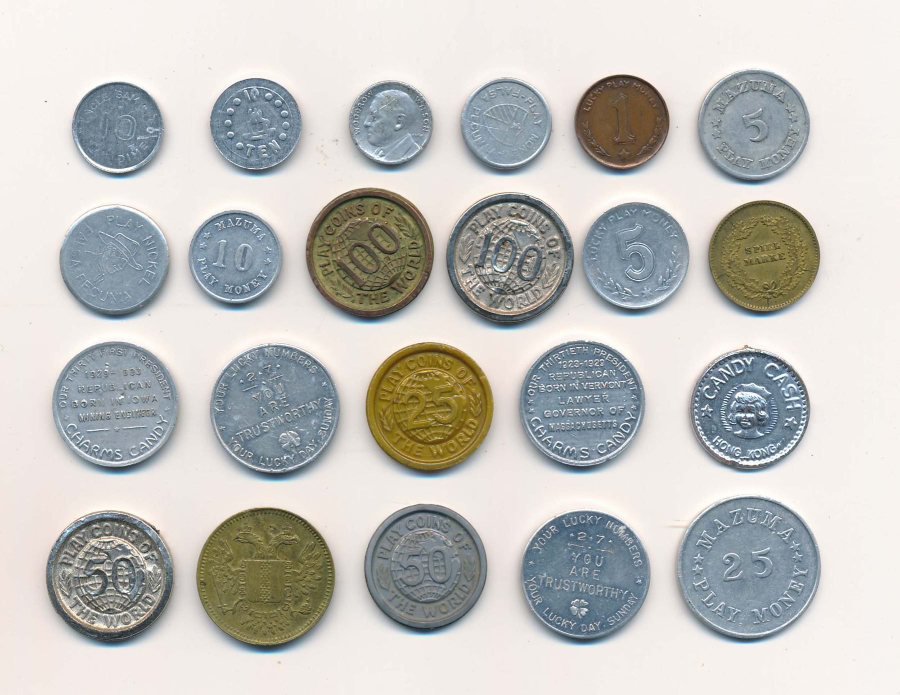A Great Starter Set of Play Money for a novice or retail dealer. All different in several materials.