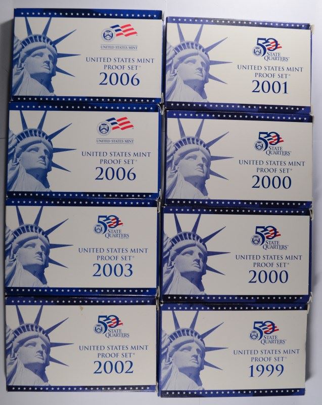 U.S. PROOF SET LOT: 1999 (2) 2000, 2001, 2002, 2003 & ( 2 ) 2006