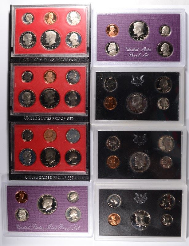 U.S. PROOF SET LOT; 3-1971, '88, '84, 2-'80, '81, '75 ORG.PACK, PLUS 7 MORE