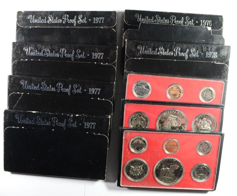 U.S. PROOF SETS: 2-1974, 2-75, 2-76, 4-77, 3-78, 3-79 ORIG. 76, 77, 78 NO BOXES