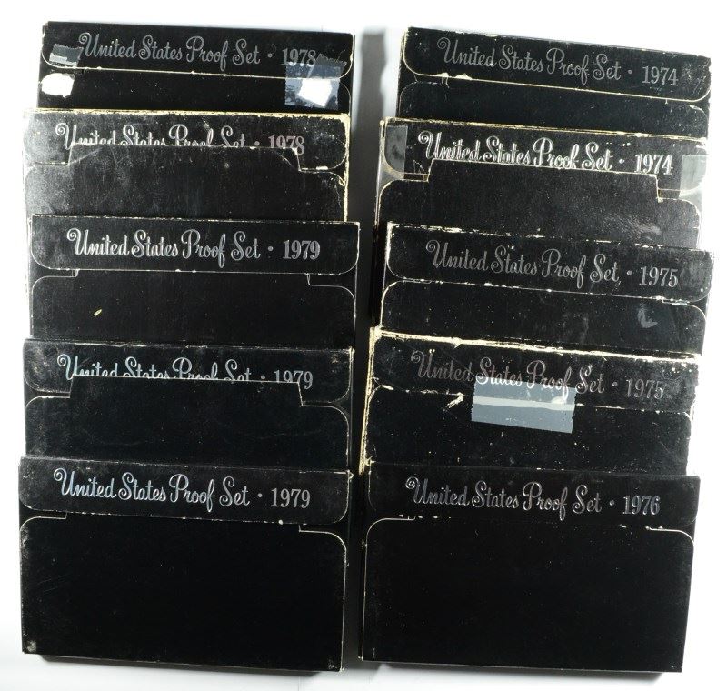 U.S. PROOF SETS: 2-1974, 2-75, 2-76, 4-77, 3-78, 3-79 ORIG. 76, 77, 78 NO BOXES