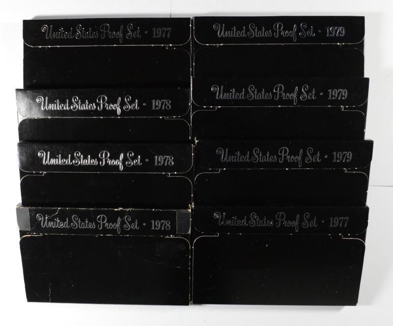 U.S. PROOF SETS: ( 2 ) 1977, ( 3 ) 1978 AND ( 3 ) 1979 IN ORIGINAL PACKAGING