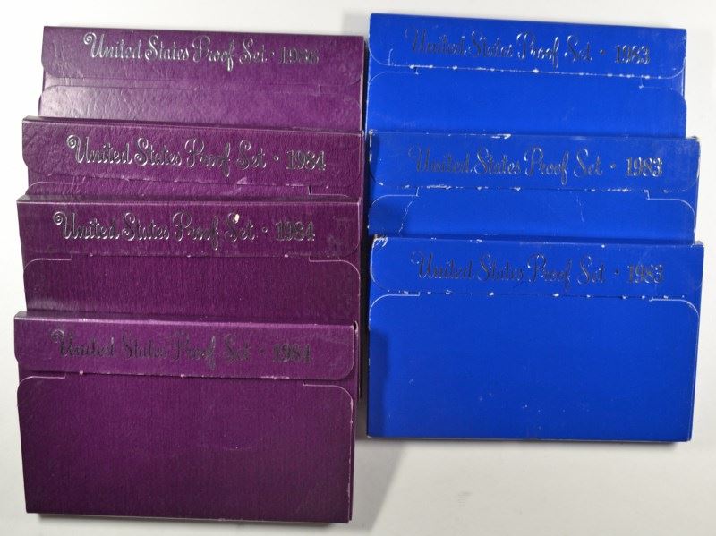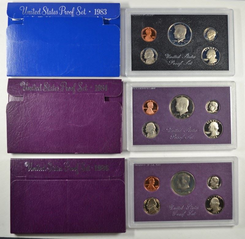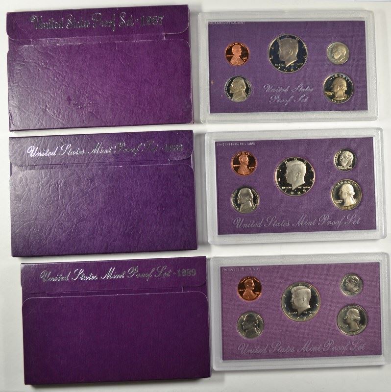 U.S. PROOF SETS: 3-1983, 3-84, 3-86. 3-87, 3-88 AND 3-1989 ALL IN ORIG PACKAGING
