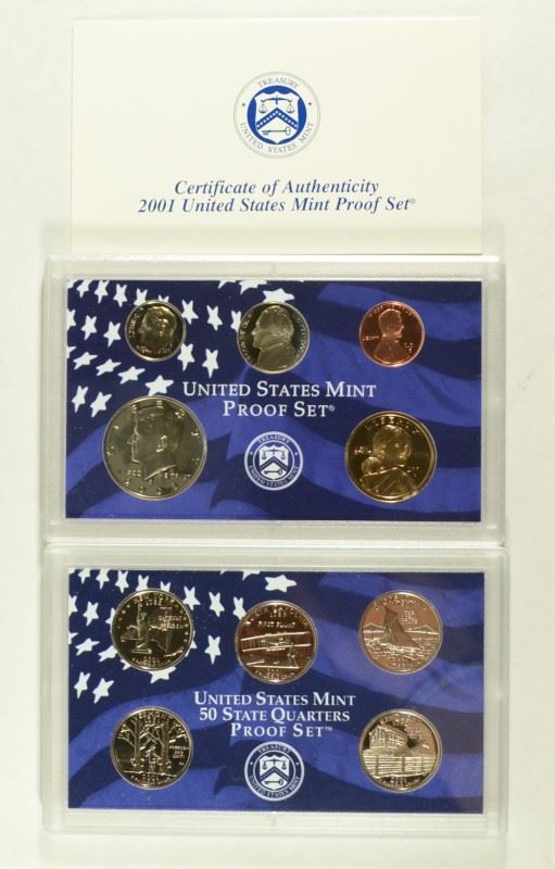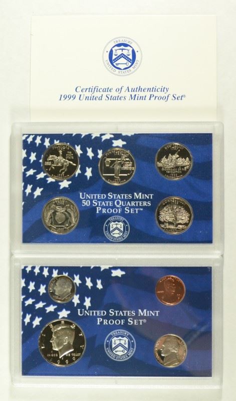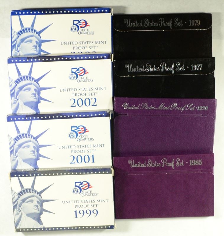 U.S. PROOF SETS IN ORIG BOXES: 1977, 79, 85, 90, 99, 2001, 2002 & 2003