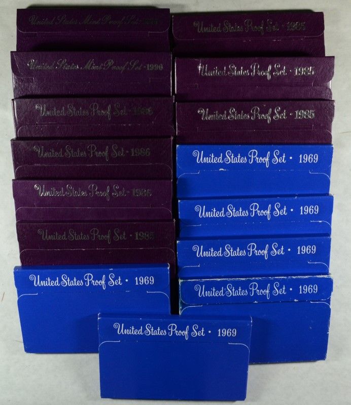 U.S. PROOF SETS IN ORIG BOXES: 6-1969, 4-1985, 3-1986 AND 2-1990