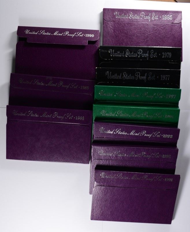 U.S. PROOF SETS IN ORIGINAL PACKAGING: 1977, 79, 85, 88 THRU 94 AND 1997