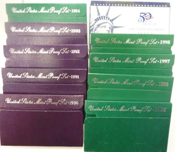 U.S. PROOF SETS OF THE 90'S ( 10 ) SETS, ORIGINAL MINT PACKAGING