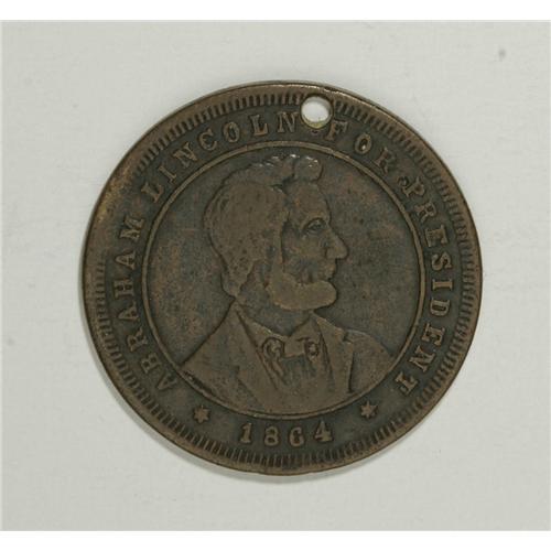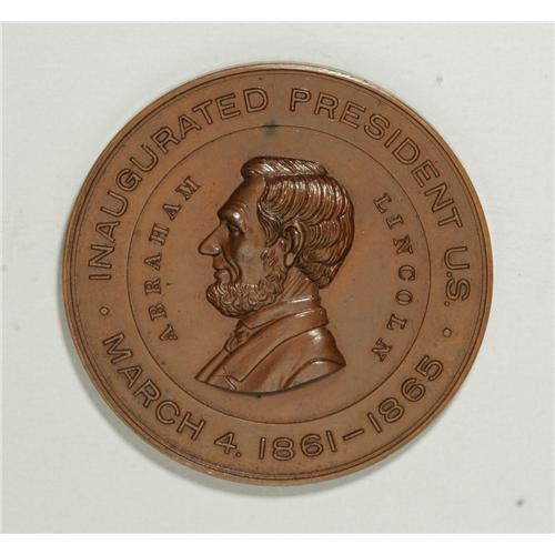 <B>U.S. Political Election Token Group Lot.</B></I> Two Lincoln items: one issued for the 1864 election, with a portrait of Lincoln facing right and a shield on the reverse with a large US in the center, and one that commemorates Lincoln's presidential inauguration on March 4 1861, a nice medal measuring 37 mm; and a piece struck for John Bell, a Union candidate for president in 1860, in a rainbow of toned colors accented by prooflike fields, struck in white metal and silver-plated, so nice one would think it was struck in silver. The market value is about $175-$250.<BR><BR><b>Shipping:</b> Coins & Currency (<a target="_blank" href="http://www.heritageauctions.com/common/shipping.php">view shipping information</a>)