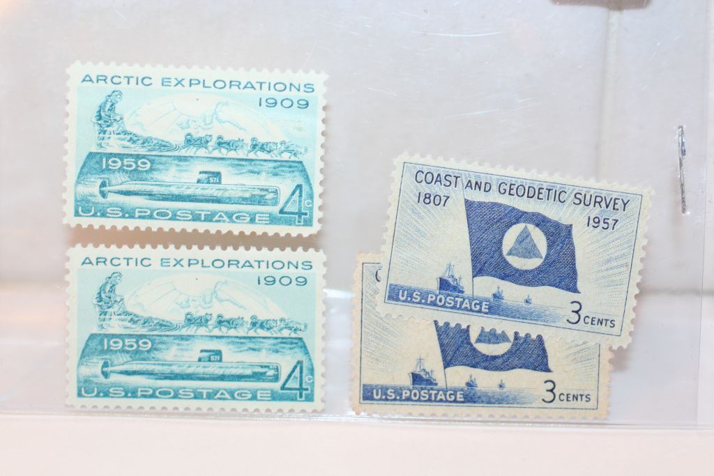 This lot is a set of (4) united states postage stamps; (2) 4 cent 1959 arctic explorations & (2) 3 cent 1957 coast & geodetic survey
