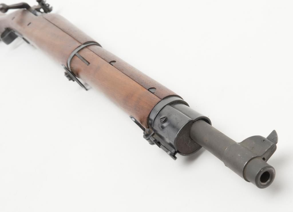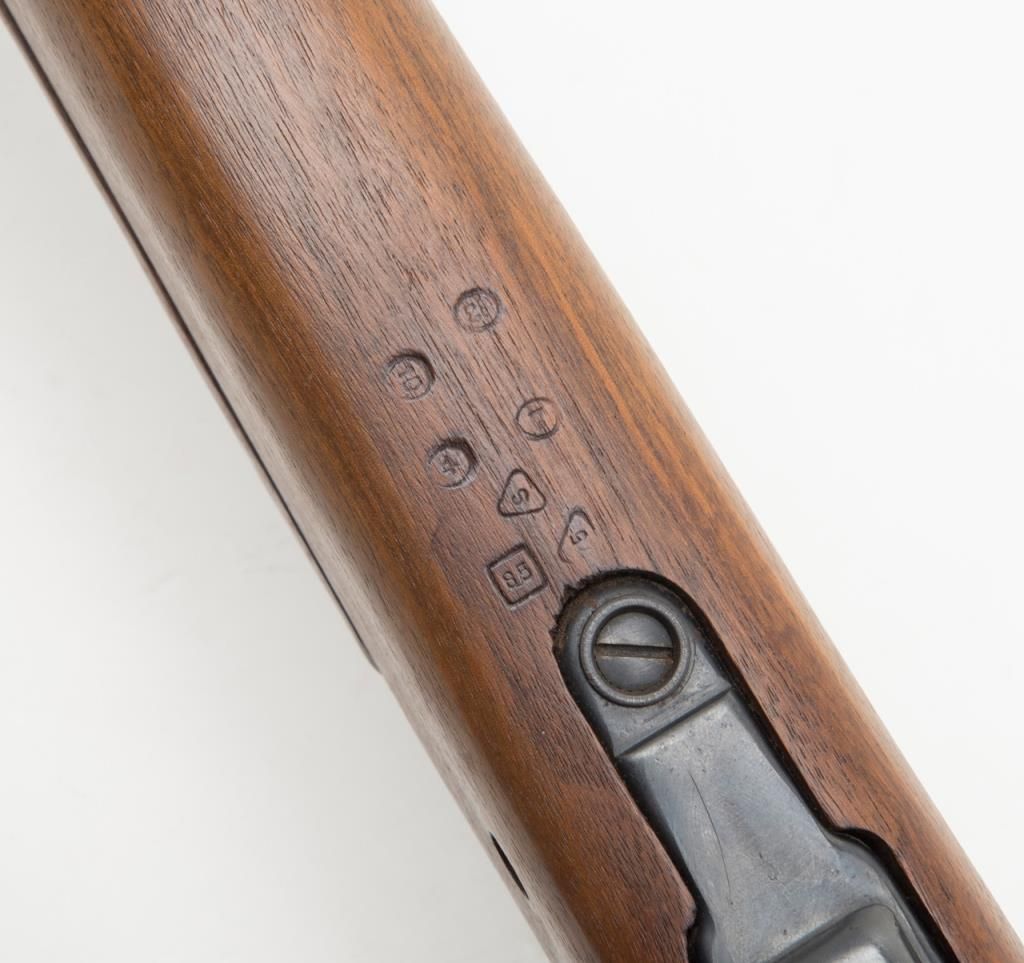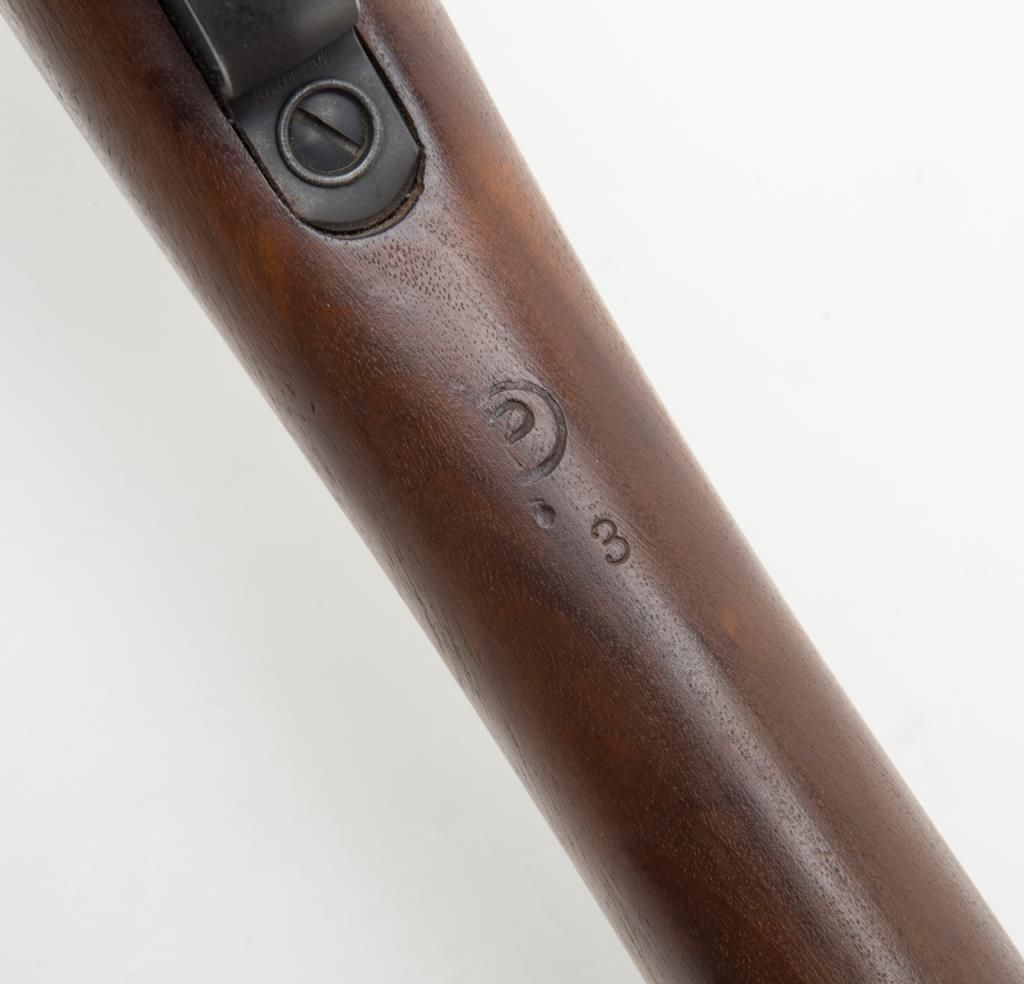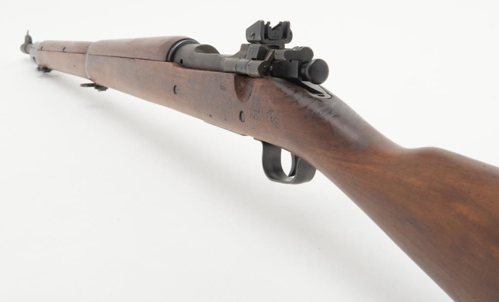 U.S. Remington Model 03-A3 bolt action rifle, 30-06 caliber, Serial #3850808. The rifle is in overall very good condition with a 24” barrel dated 9-43. The barrel retains the majority of its military finish with the “R.A.” and flamingbomb marks. The action shows nearly all of its military finish as well. The smooth wood stocks are in overall very good condition with numerous cartouches and inspectors marks including “RA” and “JFA” amongst others. At some point during theperiod of use, someone has added a White Line ventilated rubber butt pad. The bore is very good, the action crisp and markings sharp on this rifle. (C+R). Est.: $250-$500
