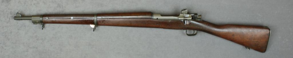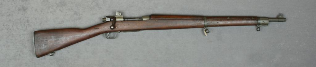 U.S. Remington Model 03-A3 military  bolt-action rifle, .30-06 cal., 24” barrel  dated 2-44 with flaming bomb and R.A. proofs,  parkerized finish, sling swivels, wood  stock, #4116748. This gun is in overall verygood condition showing majority of a  parkerized finish with black finished bolt,  very good bore, action, markings and overall  good + wood stock with scattered nicks, mars  and scratches from carry and storage, circleP proof with “AOD” inspector’s mark on left  side of stock and “68” stamped on top of  stock in front of the butt plate.  Est.:   $300-$600.