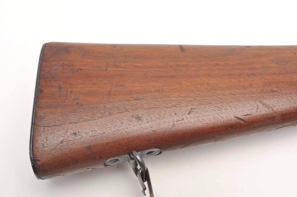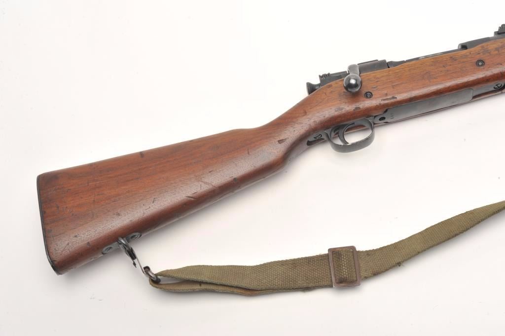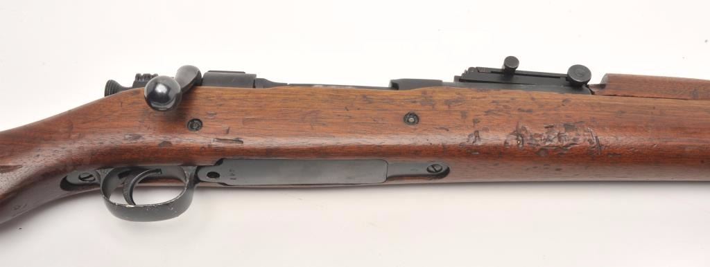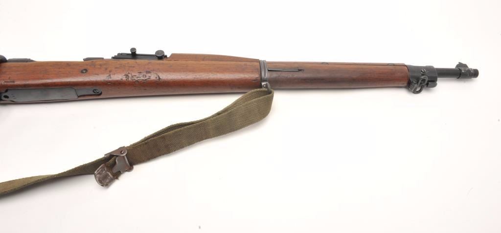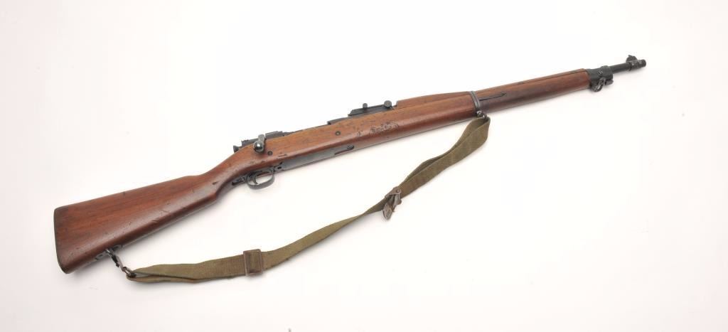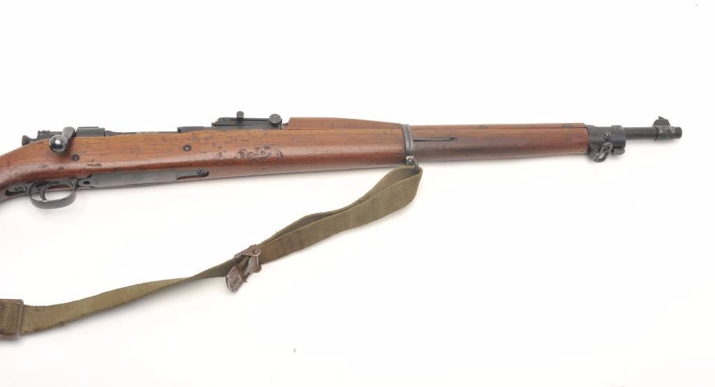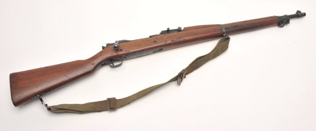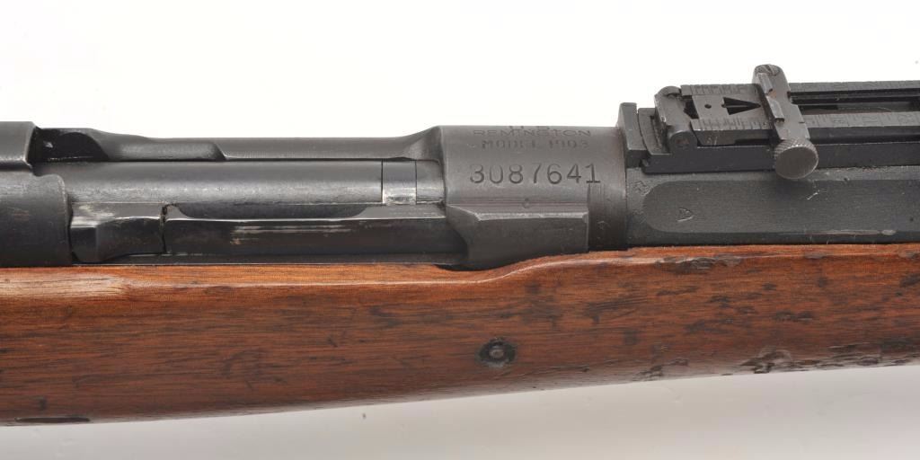 U.S. Remington Model 1903 bolt action rifle, .30-06 caliber, import-marked 24” S.A. barrel dated 10 42; military finish, wood stock, olive green woven sling, S/N 3087641, in overall good condition with ample militaryfinish remaining, good bore, action and markings, stock is overall good with no visible proofs or cartouches; some scattered old mars and scratches from carry and storage. (C&R/PPT). Est.: $250-$500.