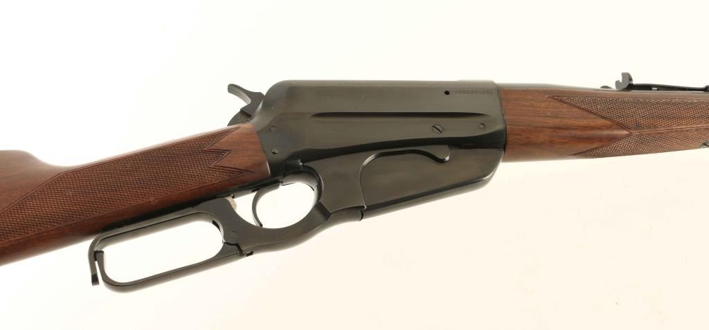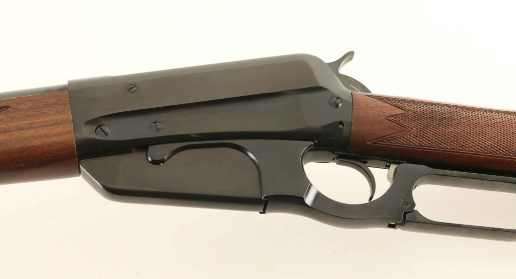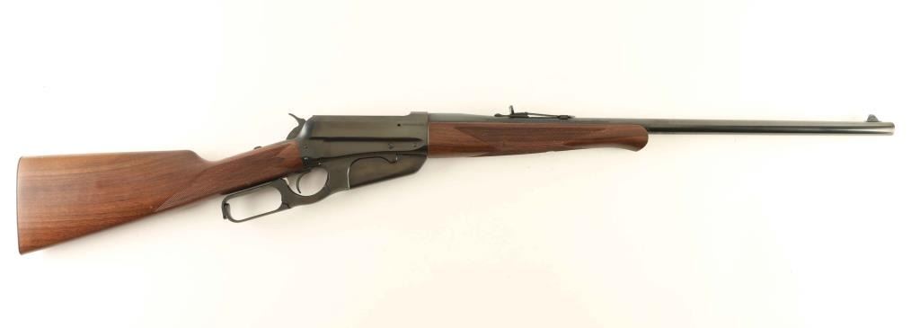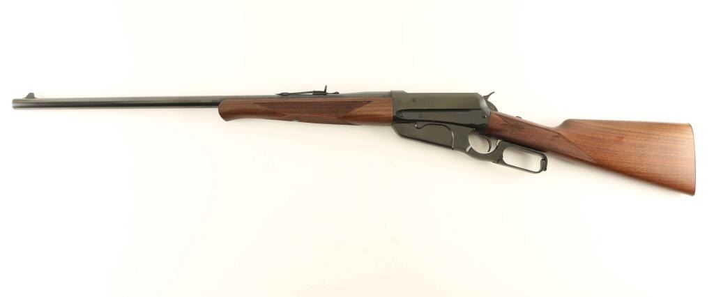 High quality reproduction of the Winchester Model 1895 lever action repeating rifle chambered in .405 Winchester. Manufactured in Japan by Miroku circa 1997 and marketed under the Winchester name. Featured a polished blued finish, 24" round barrel, pinned blade front sight with brass bead, elevation adjustable semi-buckhorn rear sporting sight, fixed 4 round magazine, smooth trigger, knurled hammer spur, sliding tang safety, two-piece finger lever, hand checkered walnut schnabel forend and straight grip shoulder stock with smooth metal buttplate. Rifle exhibits approximately 99%+ of it's original polished blued finish showing few light handling marks with no major wear observed. Action is smooth, the bore is pristine and the satin finished walnut stocks are fine. Condition near NRA Perfect. ***Modern Firearm***