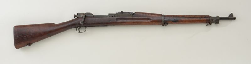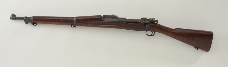 U.S. Rock Island Arsenal Model 1903 bolt-action rifle, .30-06 cal., 24-1/2” barrel dated 8-28 with S.A. and flaming bomb markings, military finish, wood stock, sling swivels, #422912. This gun is in overall good condition showing considerable military finish, good bore, action and markings; stock is overall good with partial circle P proof behind trigger guard and partially visible inspector’s cartouche on left side of stockabove the trigger; stock shows scattered old nicks, mars and scratches from carry and storage. Est.: $300-$600.