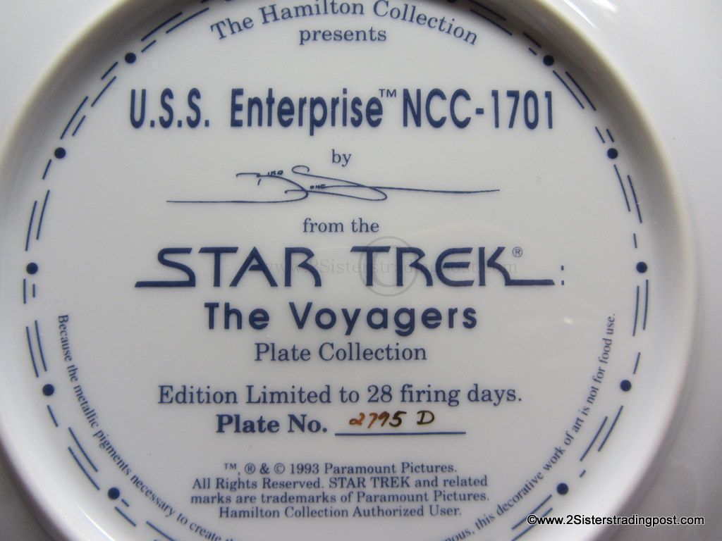 Star Trek The Voyagers plate Collection, art work by Keith Birdsong "U.S.S. Enterprise NCC-1701". This is a used plate in wonderful condition, made available by The Hamilton Collection the plate was limited to 28 firing days and is plate #2795D.
